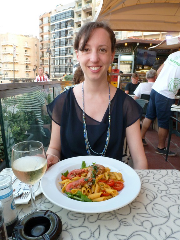 Die maltesische Küche ist natürlich mediterran beeinflusst. Die Karte war in fast allen Restaurants sehr ähnlich, es gibt Pasta, Pizza, Fisch, Fleisch und – interessanterweise – fast überall auch Burger. Wir haben eigentlich jeden Abend Pizza und Pasta gegessen. Dadurch, dass das Meer vor der Tür liegt, gibt es überall ein großes Angebot an Fisch und Meeresfrüchten. Da englisch zweite Amtssprache auf Malta ist, sind die Speisekarten alle auf Englisch und auch alle Kellner sprechen englisch, was die Verständigung natürlich einfacher macht. Erstaunt hat mich, dass eigentlich jedes Restaurant glutenfreie Speisen ausweist bzw. anbietet z.B. Pastagerichte glutenfrei zubereiten zu können. Warum das so ist, habe ich nicht herausgefunden.