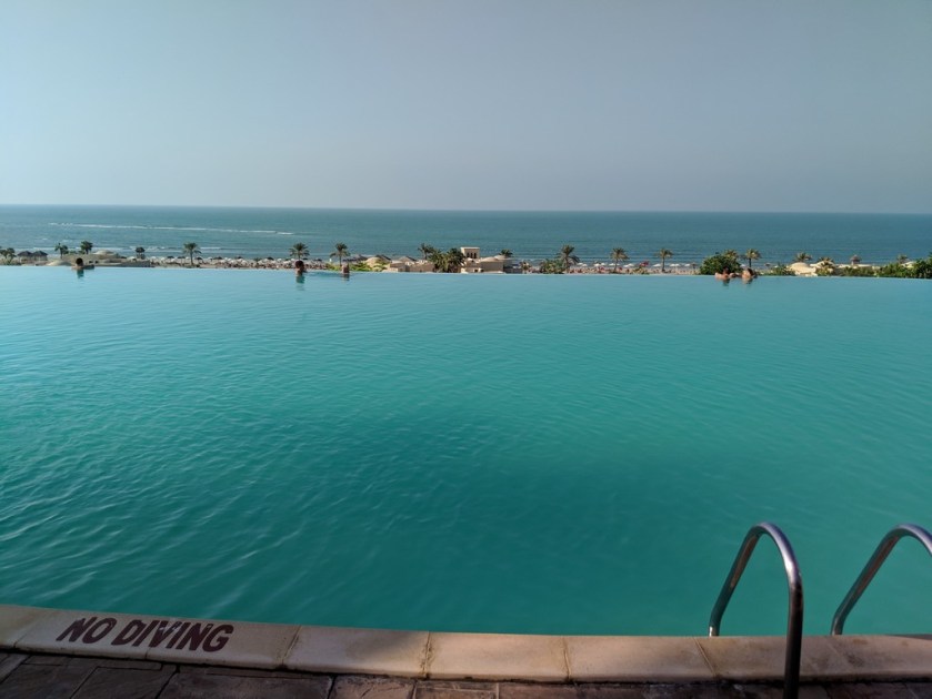 Dieses Jahr wollten wir zum Jahresabschluss nochmal in die Wärme fliegen. Ursprünglich hatten wir den Oman im Blick. Da waren wir 2016 schon (Beitrag findet ihr hier). Diesmal hatten wir überlegt, in die Gegend der Hauptstadt Muscat zu reisen, aber die Preise waren so wahnsinnig hoch, dass wir uns dafür entschieden, nochmal in die Vereinigten Arabischen Emirate zu fliegen. Genau wie 2015 buchten wir wieder das Cove Rotana Resort im Emirat Ras al Khaimah. Und genau wie vor drei Jahren hat es uns auch diesmal wieder sehr gut gefallen. Die Anlage ist sehr weitläufig mit zwei Pools und einem privaten Strandabschnitt.