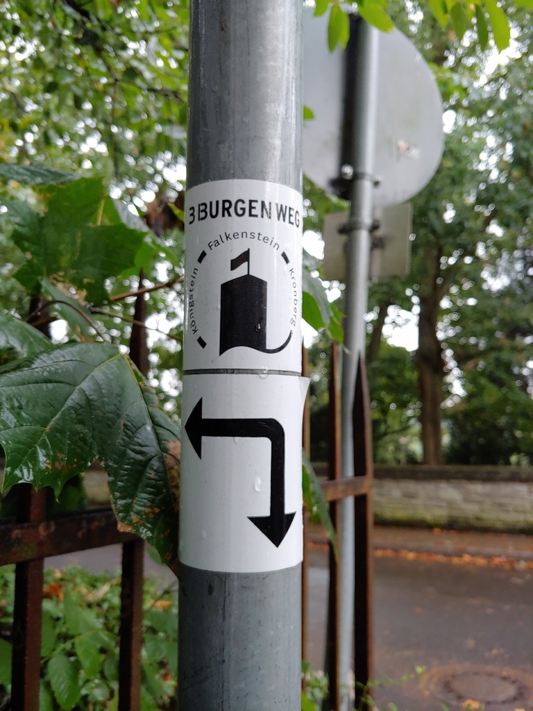 Unsere zweite Wanderung führte uns zu den drei Burgen von Königstein, Kronberg und Falkenstein. Es gibt einen ausgewiesenen Wanderweg, den man an diesen Schildern erkennt: