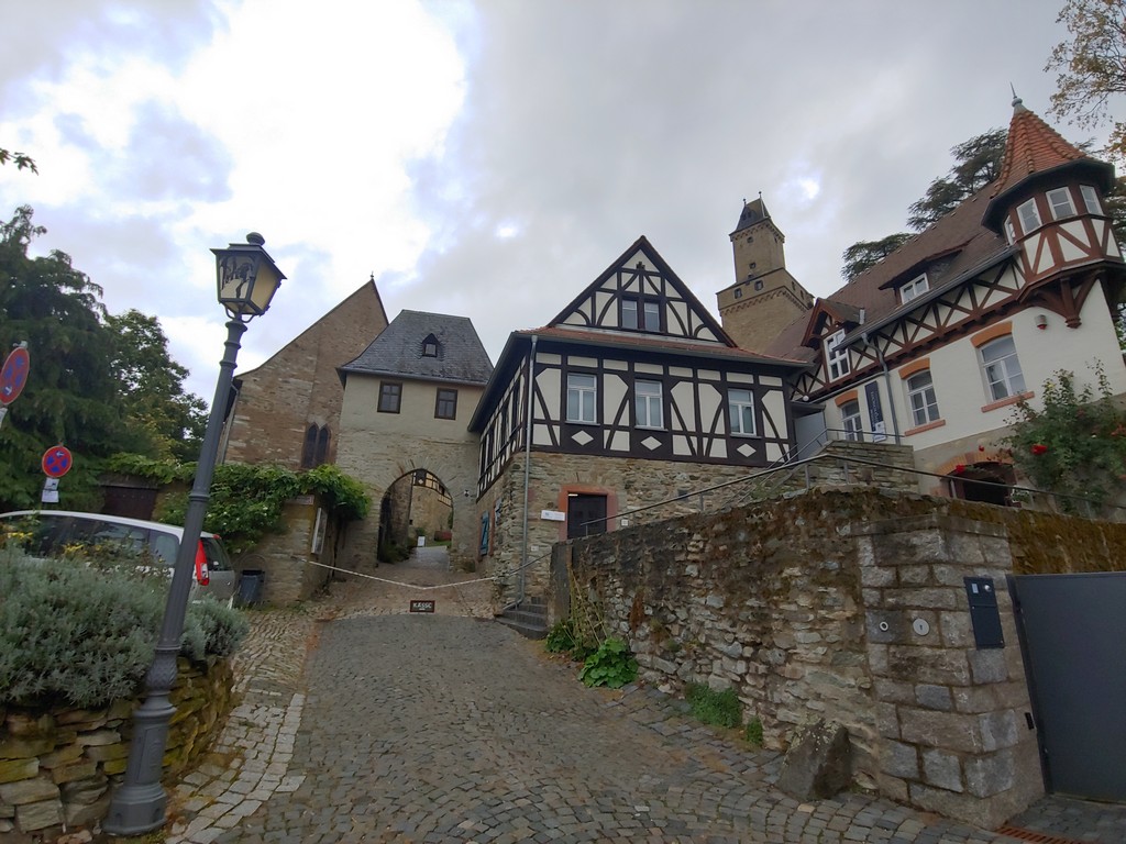 Die Burg, genauer gesagt Burgruine, liegt direkt am Stadtrand, natürlich auf einem Berg mit Wald drumherum. Die ältesten Teile der Burg stammen aus der ersten Hälfte es 12. Jahrhunderts. Wie so oft wurde auch diese Burg im Laufe der Jahrhunderte immer wieder umgestaltet und ausgebaut. Ende des 18. Jahrhunderts wurde sie durch die Franzosen zerstört. Von der Burgruine aus hat man einen schönen Blick über Rhein-Main-Ebene und die Taunuswälder. Da die Burg geschlossen war, mussten wir weiterziehen und auf den nächsten Aussichtspunkt warten, der Dettweiler Tempel.