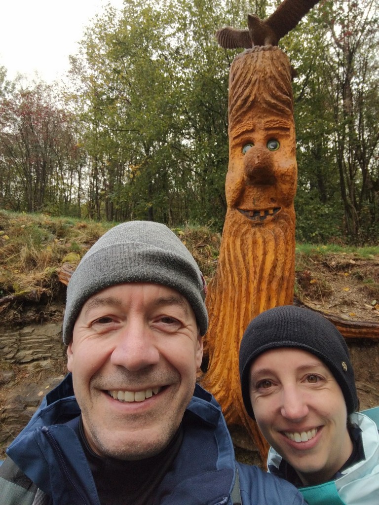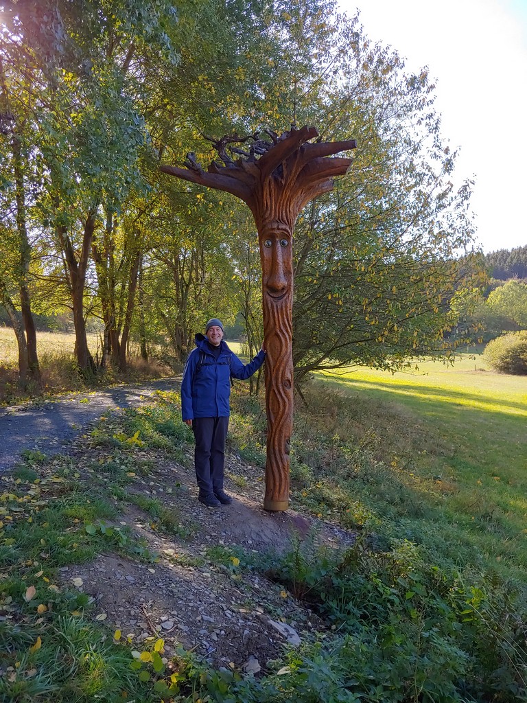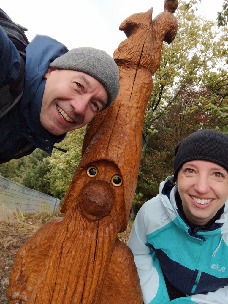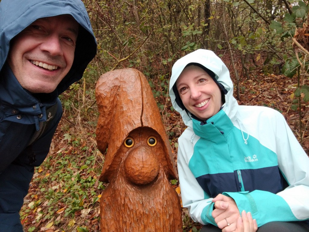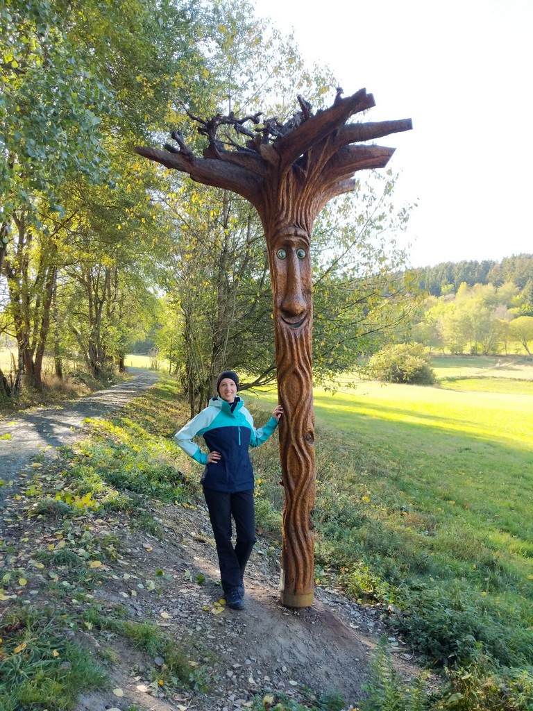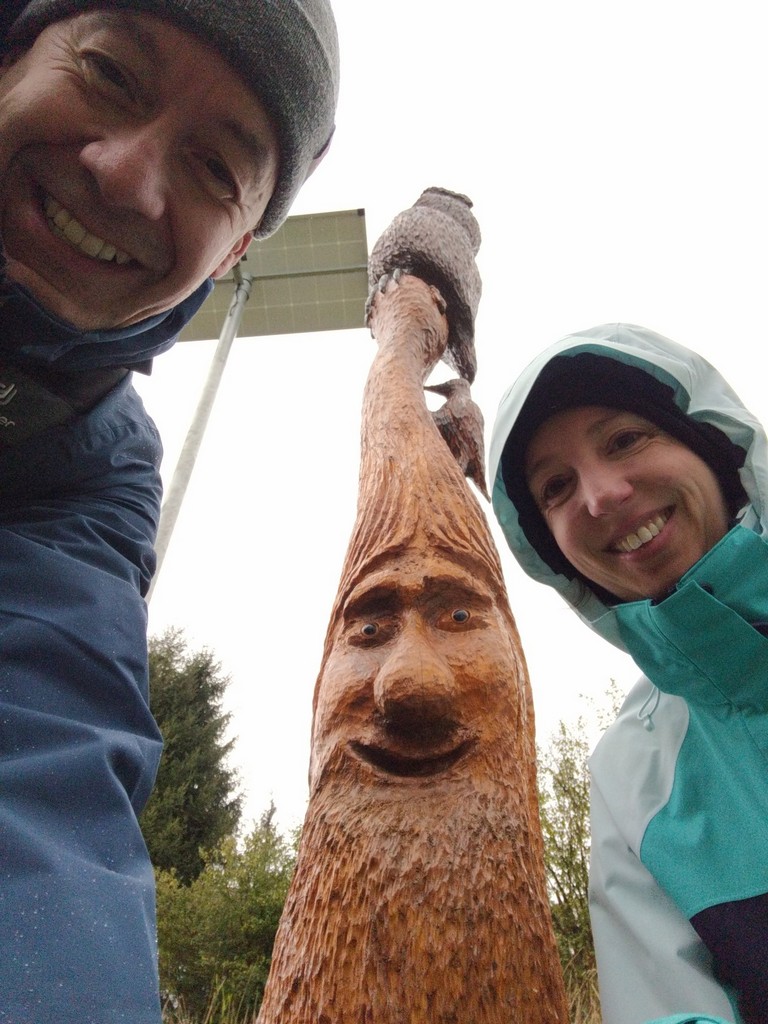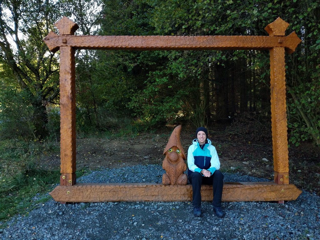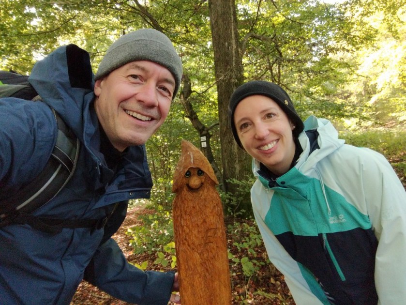 Am Wegesrand stehen geschnitzte Wichtel, ein Kunstprojekt. Ich musste jedes Mal sehr lachen, als wieder ein Wichtel in Sicht kam. Mit vielen haben wir lustige Selfies gemacht.