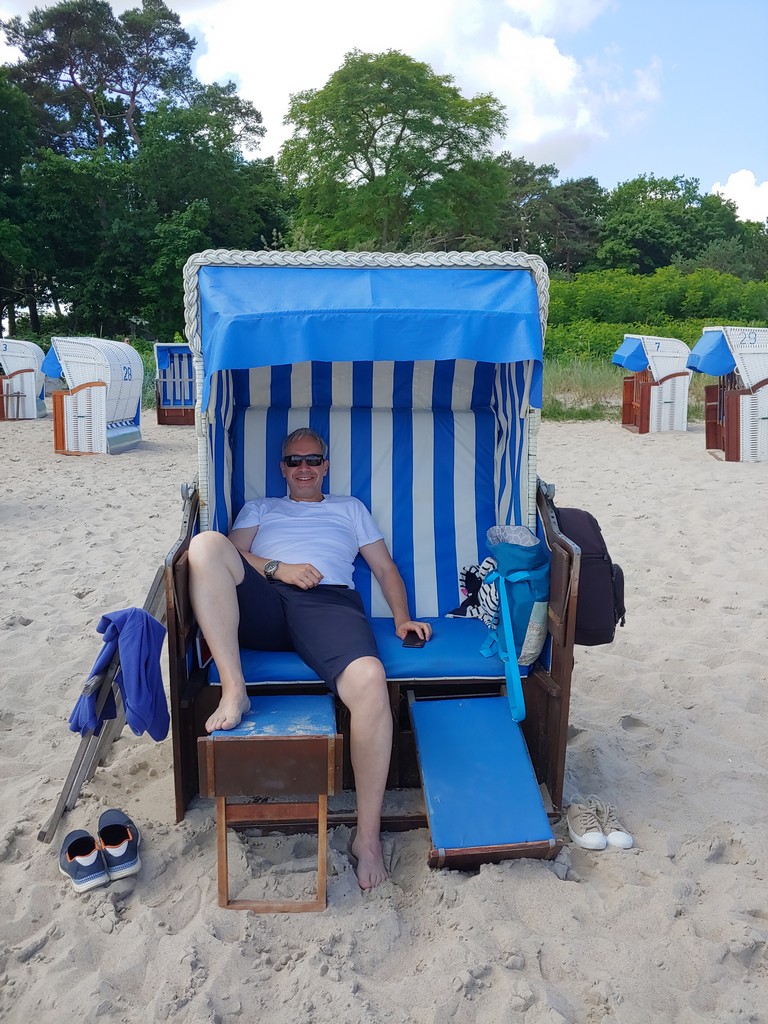 Unsere Liste war so gut wie abgearbeitet und wir wollten einen Tag entspannen. So fuhren wir am nächsten Tag wieder an den Timmendorfer Strand und buchten einen Strandkorb. Hier verbrachten wir einen schönen Tag mit etwas lesen, Leute gucken und Fischbrötchen essen.