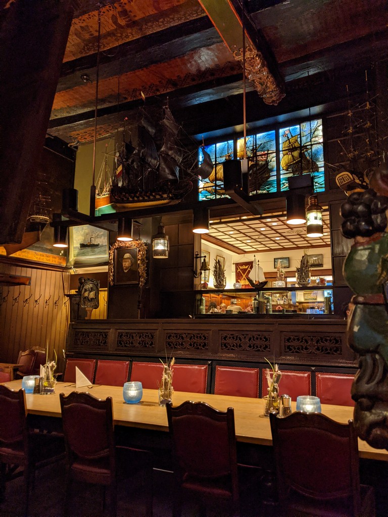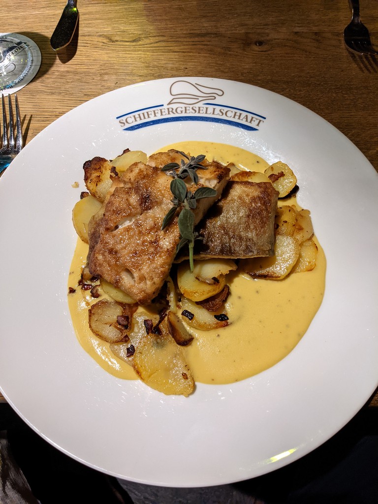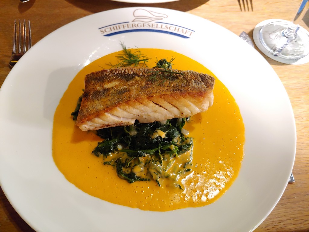 Auf eine Empfehlung hin hatten wir einen Tisch in der Schiffergesellschaft gebucht. Wir saßen im großen Saal, der historisch erhalten ist und genossen ein sehr leckeres Essen. Auch hier war die Bedienung wieder sehr freundlich.