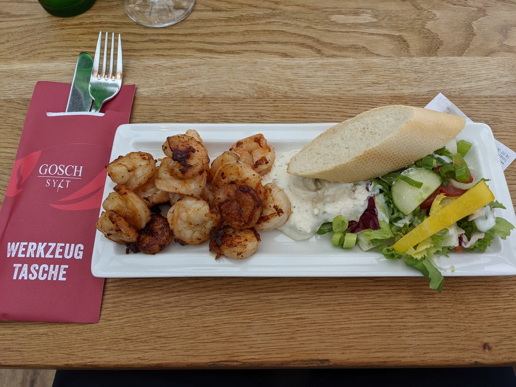Abends hatten wir einen Tisch bei Fangfrisch in Lübeck reserviert. Das Restaurant hat uns begeistert. Die Crew, die dort arbeitet, ist jung, sehr engagiert und freundlich, schafft es, aufmerksam, aber nicht aufdringlich zu sein und hat Spaß an der Arbeit. Die Gerichte sind alle mit frischen Zutaten und viel Liebe zubereitet.