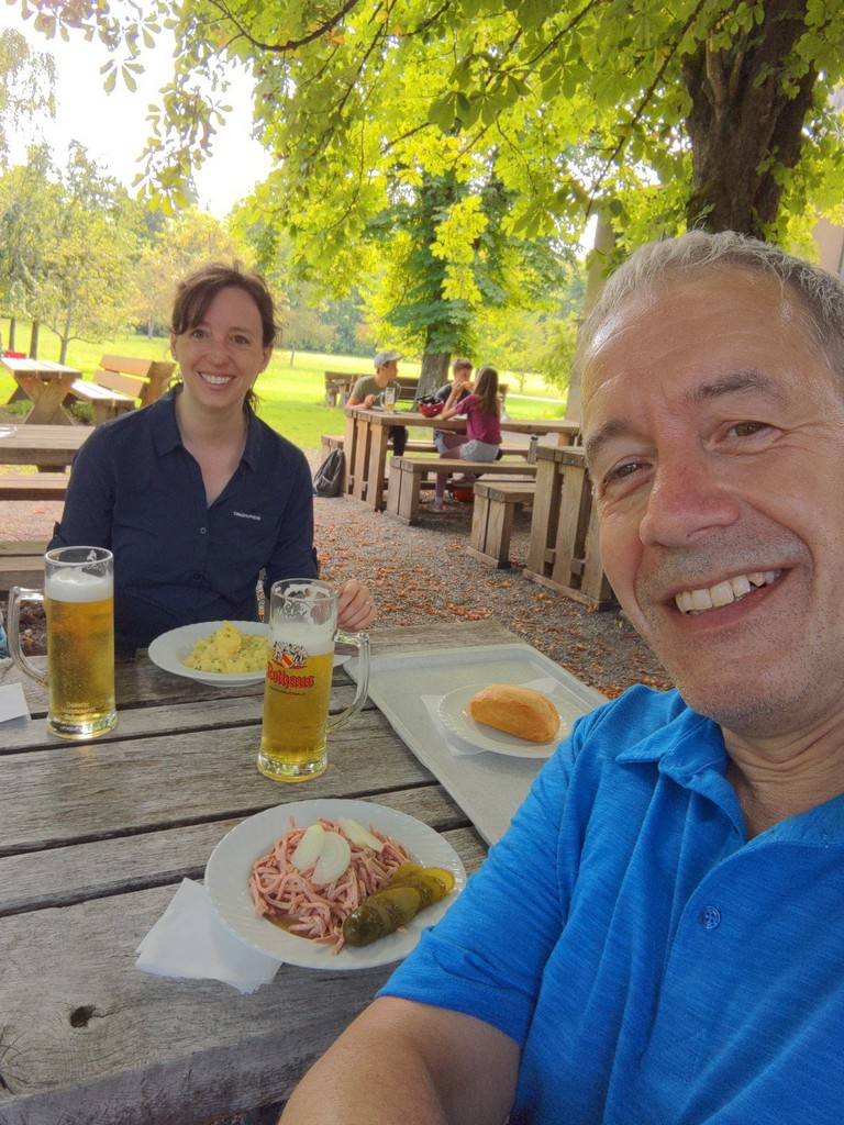 Auf dem Rückweg kehrten wir für eine Mittagspause im Kloster St. Katharina ein. Hier gibt es einen kleinen Biergarten mit einem kleinen, aber leckeren Essensangebot.