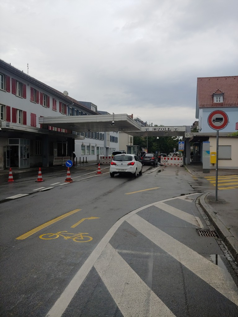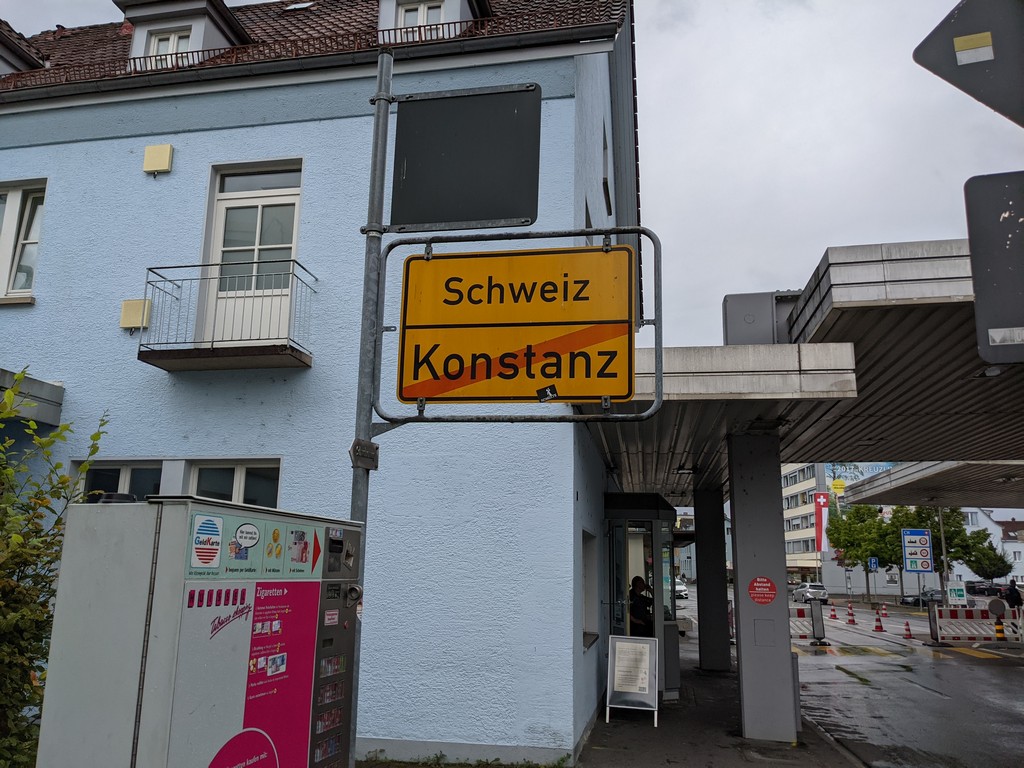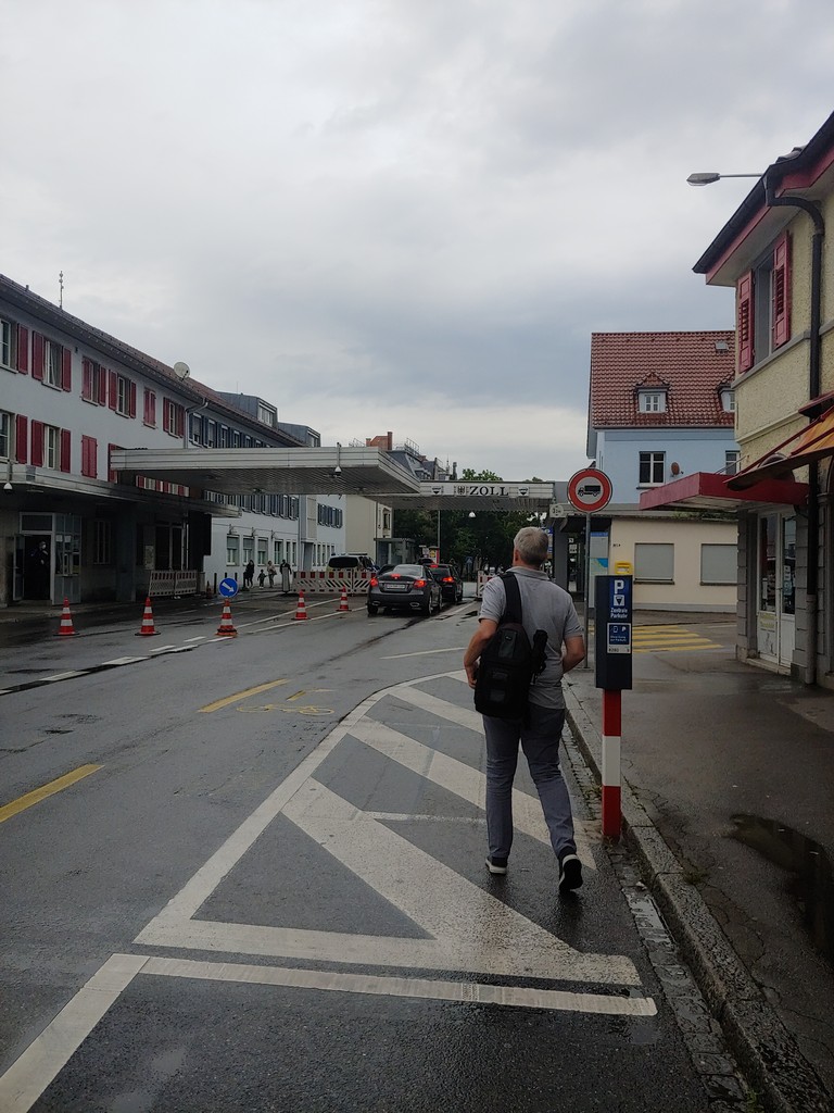 Nun kam etwas, was mich amüsierte. Wir konnten zu Fuß in die Schweiz laufen. Aufgrund von Corona befürchtete ich zunächst, dass dies nicht möglich wäre oder wir zumindest kontrolliert würden. Beides war nicht der Fall und so liefen wir über die Grenze, 100m die Straße runter und wieder zurück.