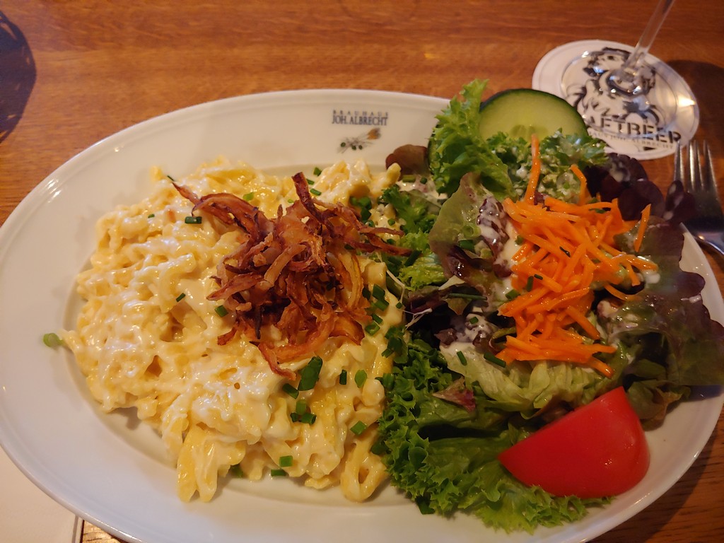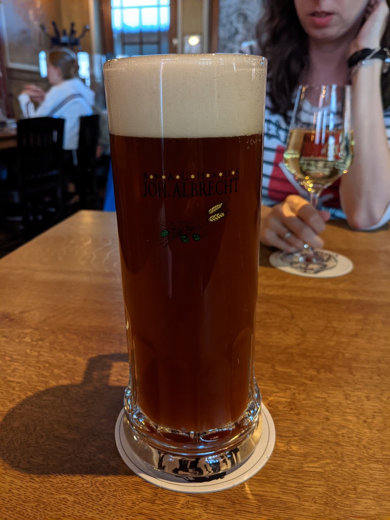 An diesem Abend kehrten wir im Brauhaus Johannes Albrecht ein. Hier gab es unter anderem österreichische Spezialitäten. Uns hat es gut geschmeckt, auch wenn Klaus vom hauseigenen Bier etwas enttäuscht war.