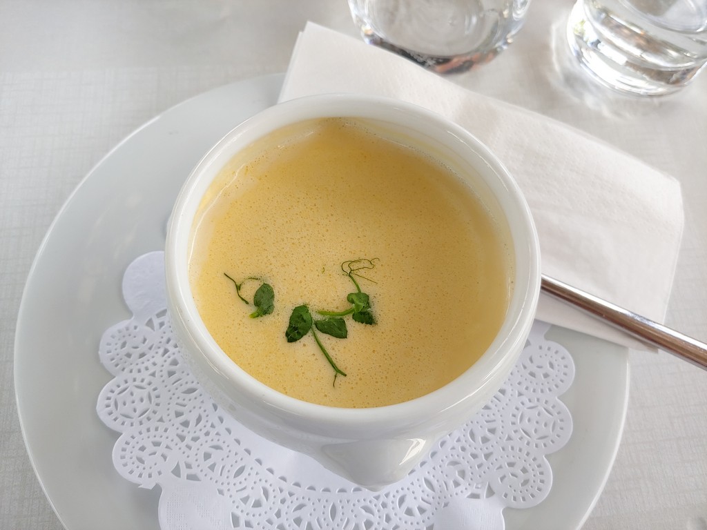 Wir liefen über die Eisenbahnbrücke rüber auf die andere Seite. Hier kann man allerdings nicht viel sehen und wenn man näher an den Wasserfall gehen möchte, muss man Eintritt zahlen. Das haben wir uns gespart und stattdessen eine Mittagspause im Schloss Laufen gemacht. Das hat sich gelohnt, denn die Weinschaumsuppe war hervorragend.
