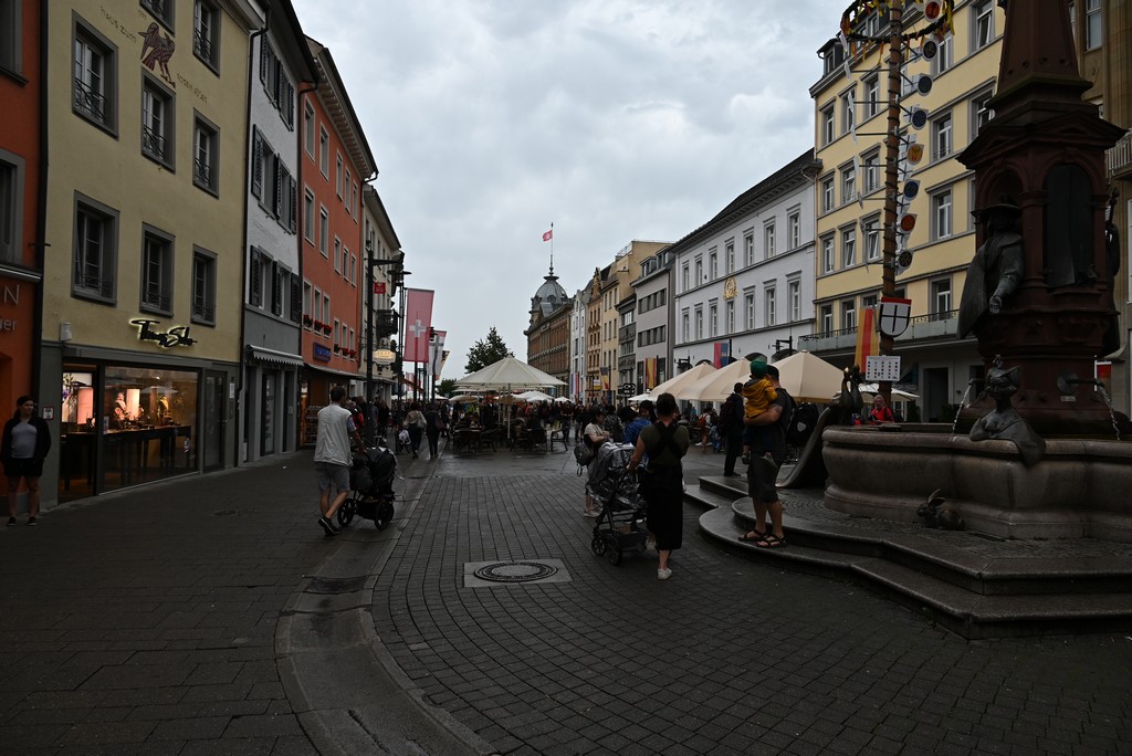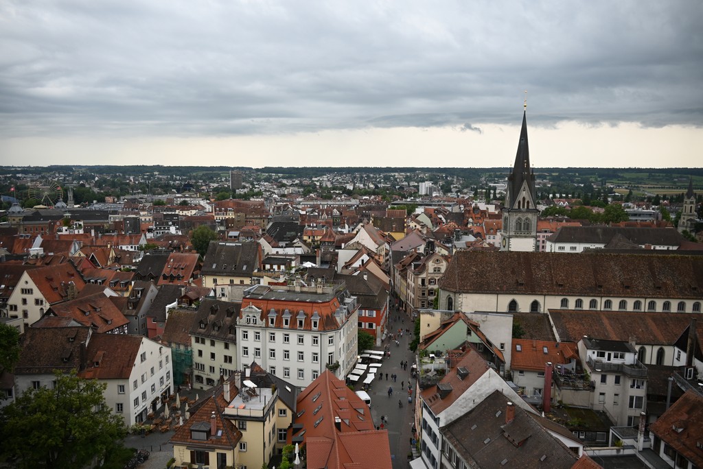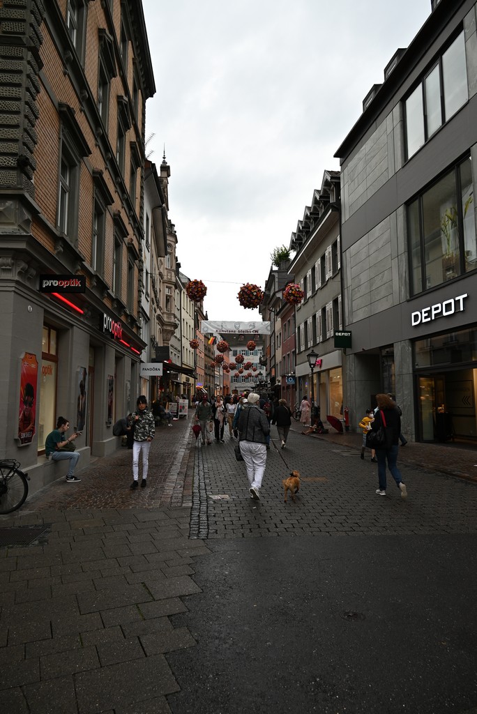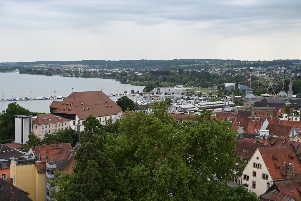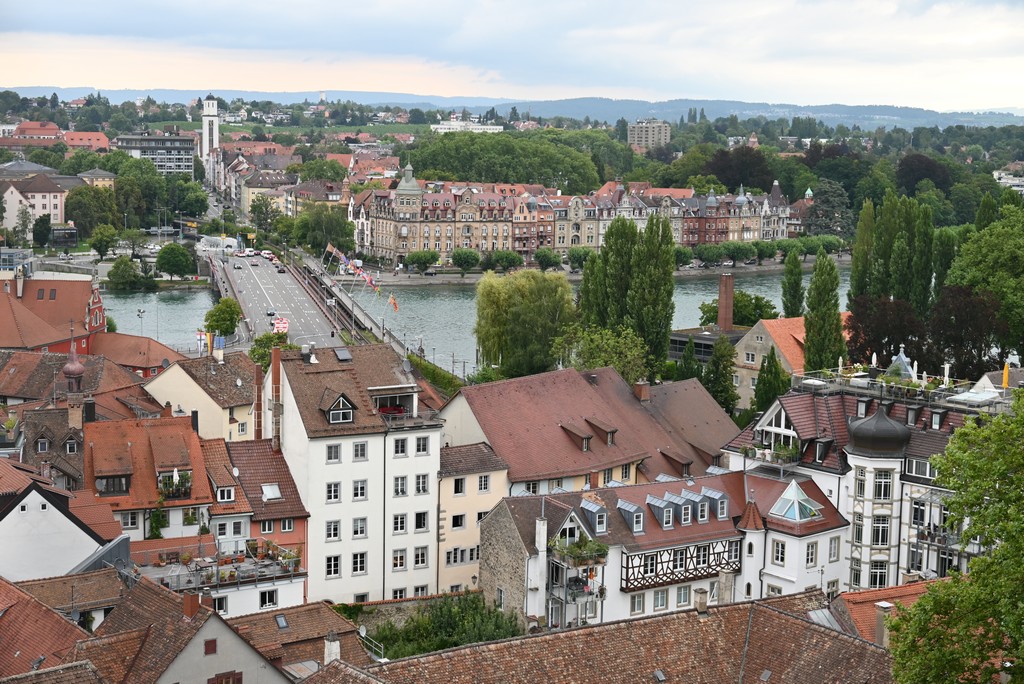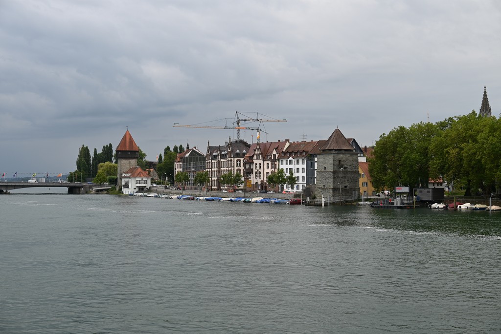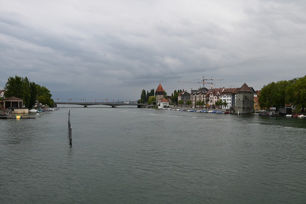 Der nächste Tag gestaltete sich regnerisch. Trotzdem haben wir Konstanz erkundet. Von unserem Hotel aus liefen wir über eine Fahrradbrücke über den Rhein. Diese Brücke kann von Autos nicht genutzt werden. Sie scheint aber wirklich sehr beliebt bei Radfahrern zu sein, denn es herrschte immer viel Verkehr. Von der Brücke aus hat man einen schönen Blick auf den Pulver- und den Rheintorturm, beides Teile der alten Stadtbefestigung.