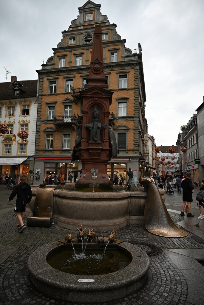 Nach einer kurzen Mittagspause war der Kaiserbrunnen unser Ziel. Hierbei handelt es sich um ein Wasserspiel aus dem Jahre 1897. Der Figurenschmuck wurde in den 90er-Jahren ausgetauscht und zeigt seitdem, in Anlehnung an das Konstanzer Konzil von 1414 bis 1418, einen dreiköpfigen Pfau mit drei Papstkronen, „Seehasen“ und weitere karikaturistische Figuren.