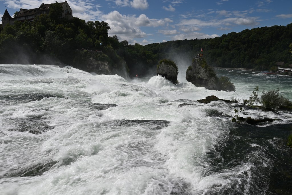 Am nächsten Tag fuhren wir tatsächlich in die Schweiz, zum Rheinfall von Schaffhausen. Wir parkten auf einem Parkplatz weiter oben und mussten ca. 10 Minuten laufen, bis wir einen guten Ausblick auf den Wasserfall hatten.