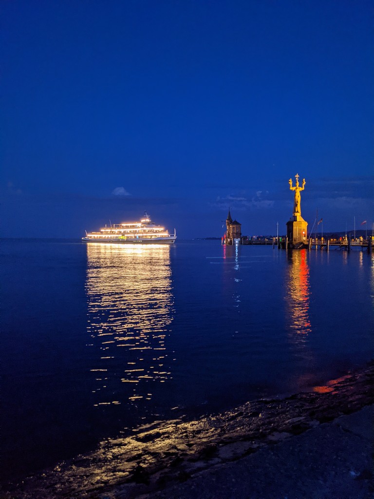 Anschließend haben wir uns auf eine Bank am Bodensee gesetzt. Hier konnte man sich Wein ToGo holen. Es war ein schöner Ausklang am ersten Abend, zumal es immer noch angenehm warm und sommerlich war.