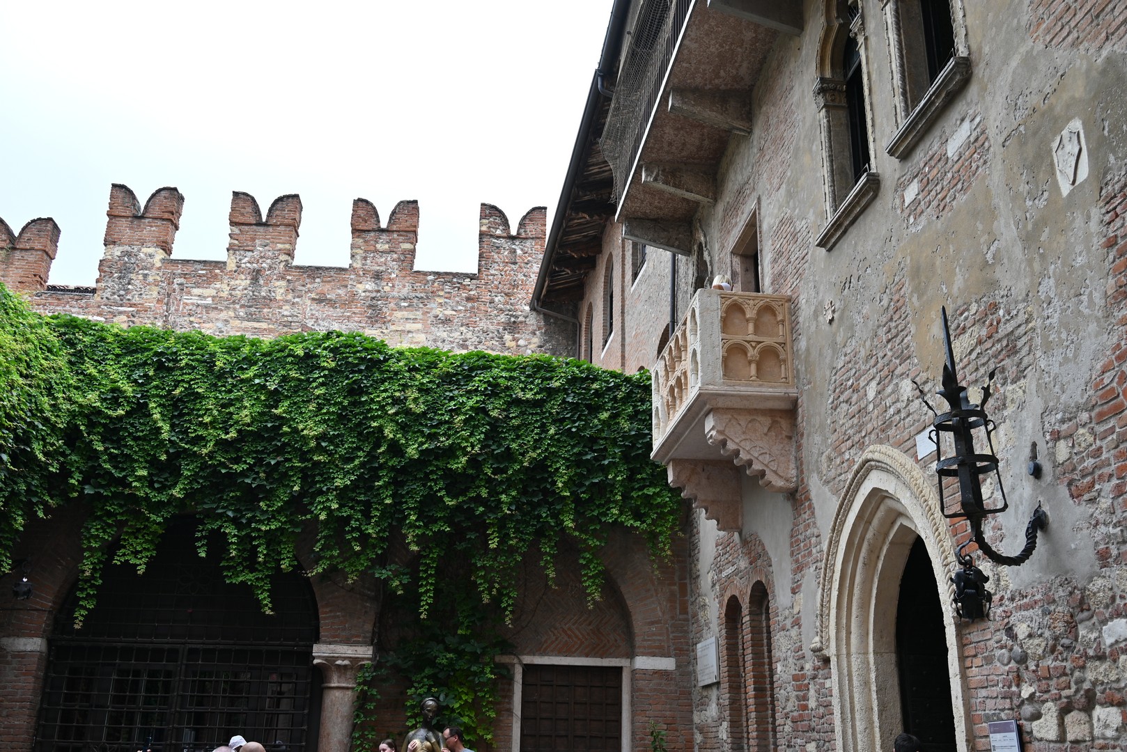 In der Nähe findet man in einem Innenhof Julias Balkon aus Romeo und Julia. Ich musste ziemlich lachen, denn erstens gab es den Balkon zu Shakespeares Zeiten nicht und wurde aus einem Sarkophag nachträglich dort angebracht und zweitens haben die Läden mit billigem Tourikram und die Art, mit der man durch den Innenhof geschleust wurde, die Romantik in den Hintergrund rücken lassen. Aber der Besuch gehört vermutlich zum Besuch in Verona dazu und es ist kostenfrei.
