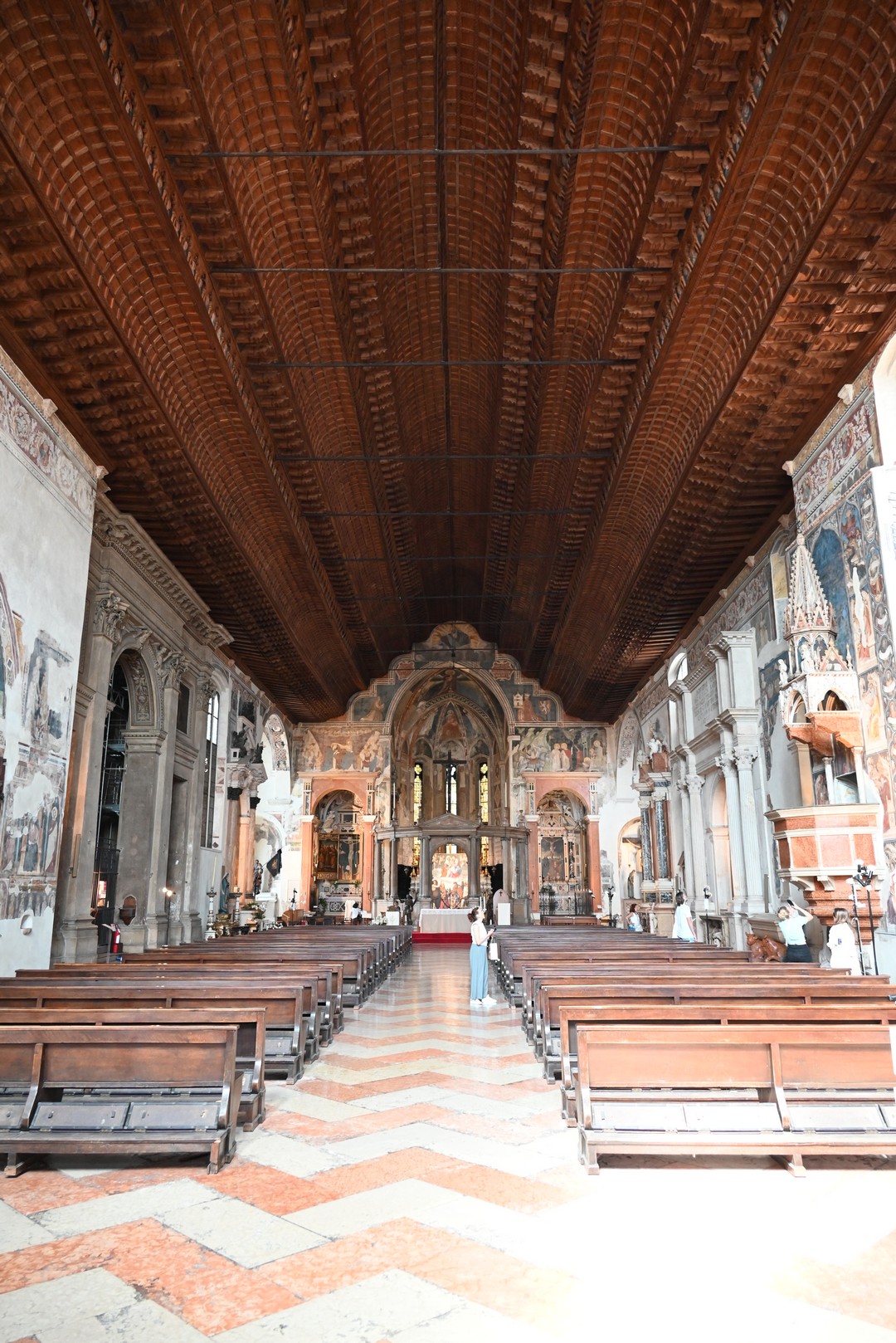 Vor der Mittagspause gingen wir noch in die Kirche San Zeno. Hier hat uns vor allem die ungewöhnliche Holzdecke begeistert.