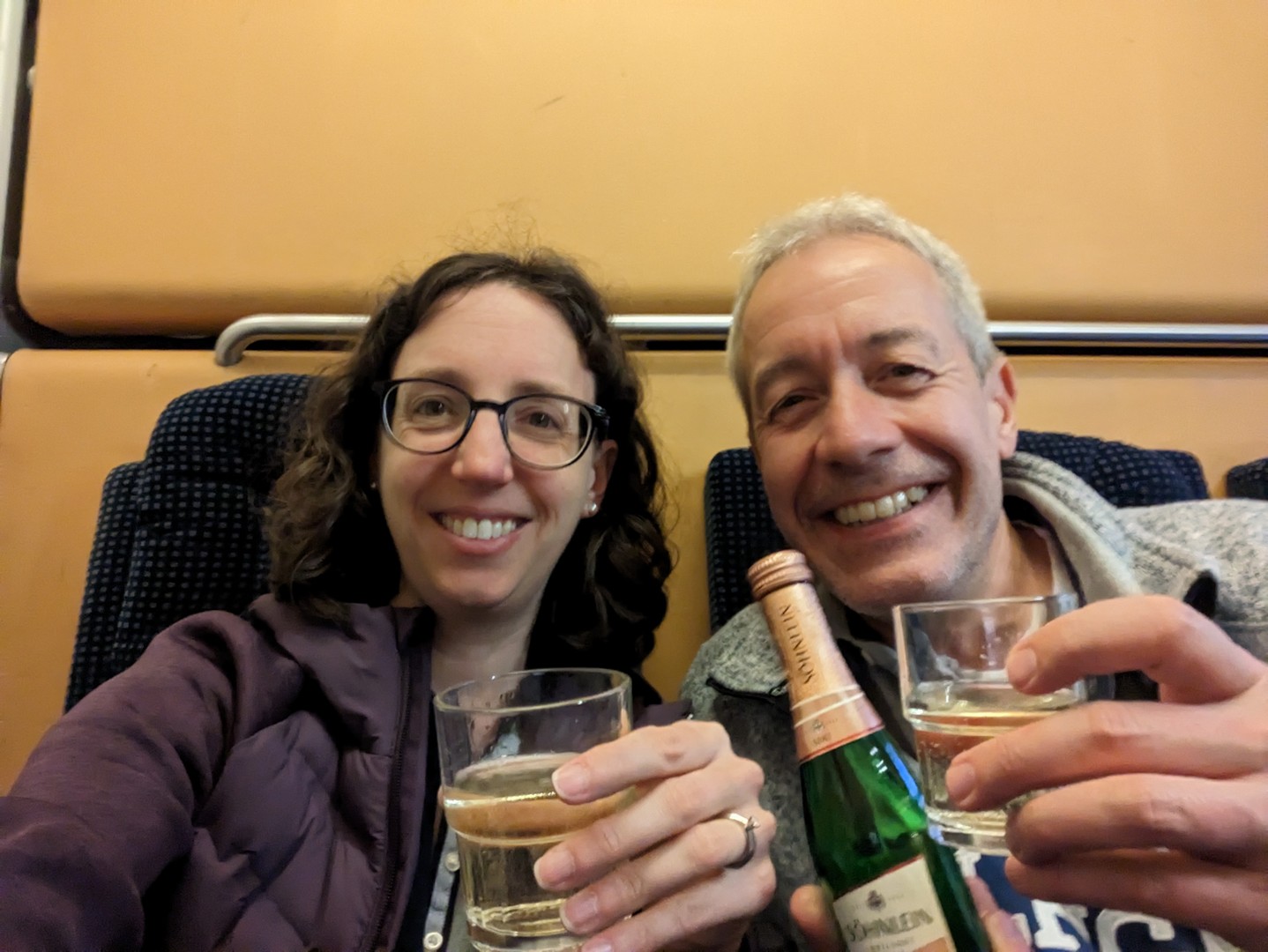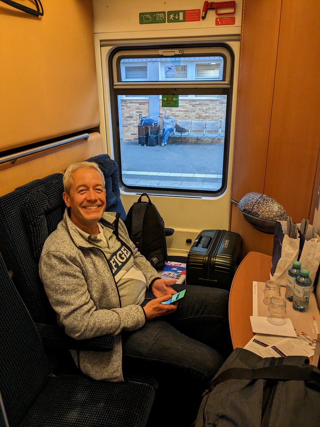 Um 20:10 Uhr fuhr unser Nachtzug vom Münchner Hauptbahnhof ab. Da es noch etwas zu früh zum schlafen war, war unser Abteil noch ein normales Zugabteil mit Sitzen, die erst etwas später vom Zugbegleiter in Betten umgebaut wurden. Wie letztes Jahr gab es für jeden einen Piccolo, Wasserflaschen und Schlappen. Da wir diesmal nicht so aufgeregt waren, schliefen wir noch etwas entspannter.