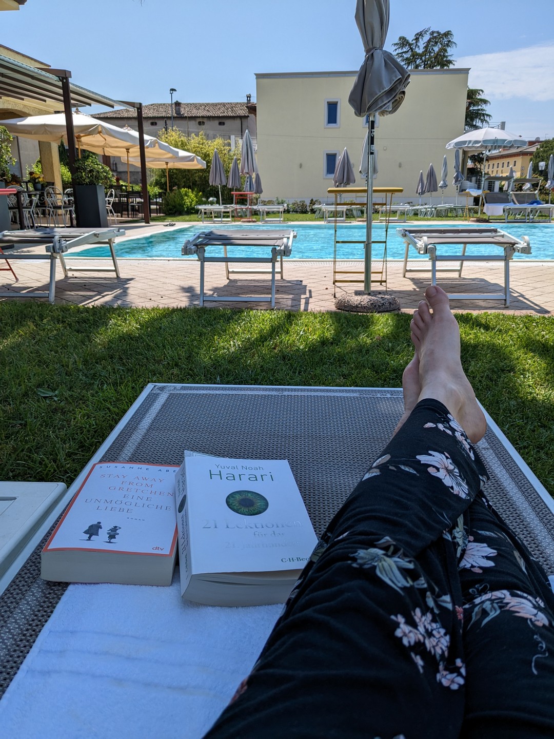 Was nicht gut klappte, war, abends am Gardasee spazieren zu gehen. Alle paar Meter liefen wir in einen Fliegenschwarm, was sehr unangenehm war. So kehrten wir meistens recht bald auf die Terrasse unseres Hotels zurück und tranken noch einen Ramazotti.