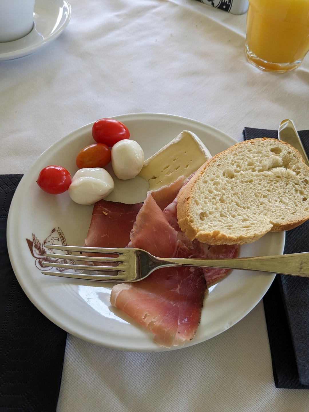 Um 6:15 kamen wir in Peschiera del Garda an. Das Frühstück, das im Zugticket inbegriffen ist, hatten wir aufgrund der frühen Uhrzeit abgelehnt und so aßen wir etwas im Kiosk im Bahnhof.