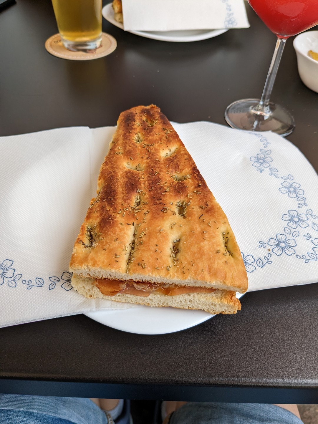Für einen kleinen Snack suchten wir uns in der Nähe ein Café und bestellten uns Foccacia mit Käse und Schinken.