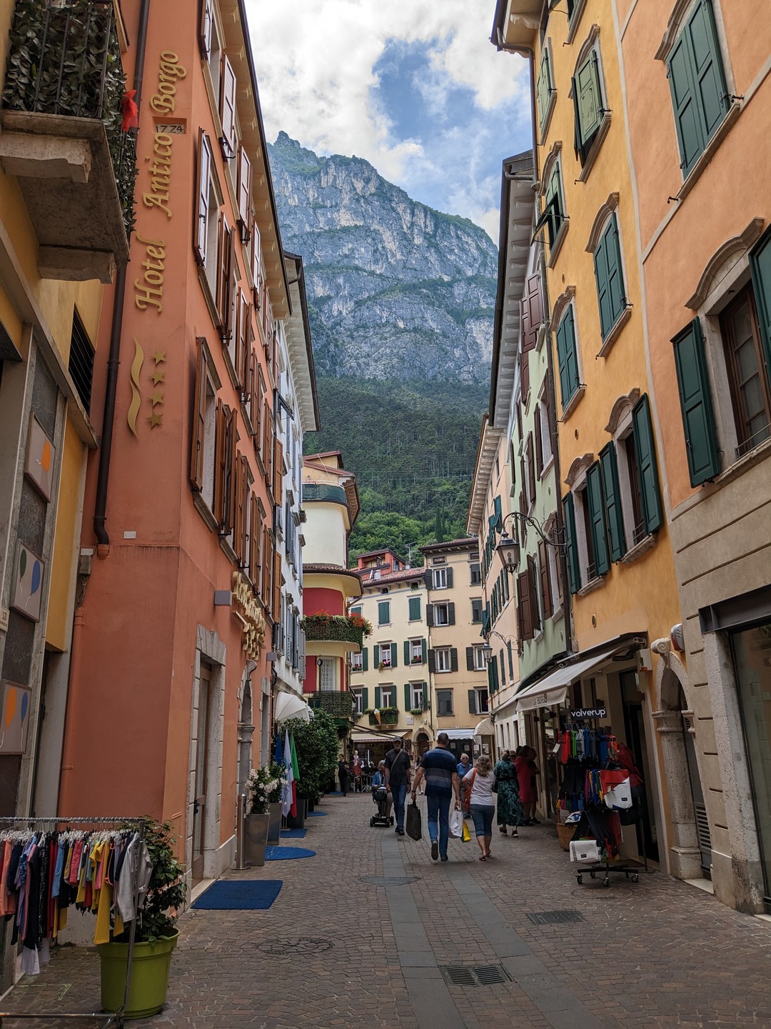 Anschließend liefen wir durch die kleinen Gassen und waren immer wieder fasziniert vom Anblick der Berge im Hintergrund. Mittagspause machten wir bei einem kleinen italienischen Restaurant in einer Seitengasse.