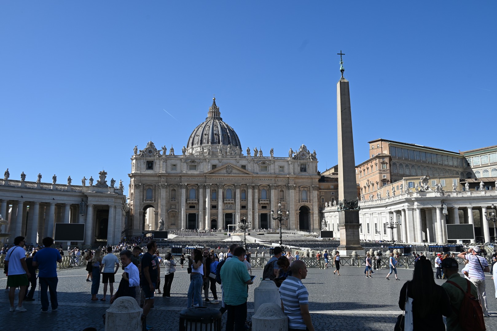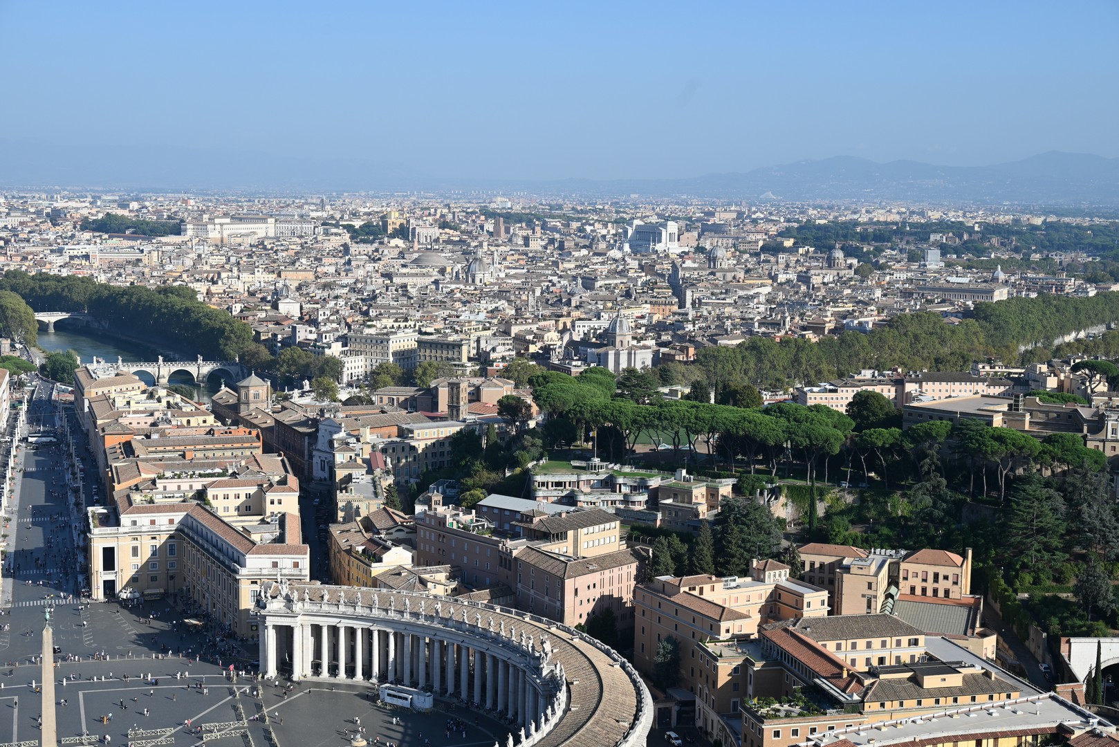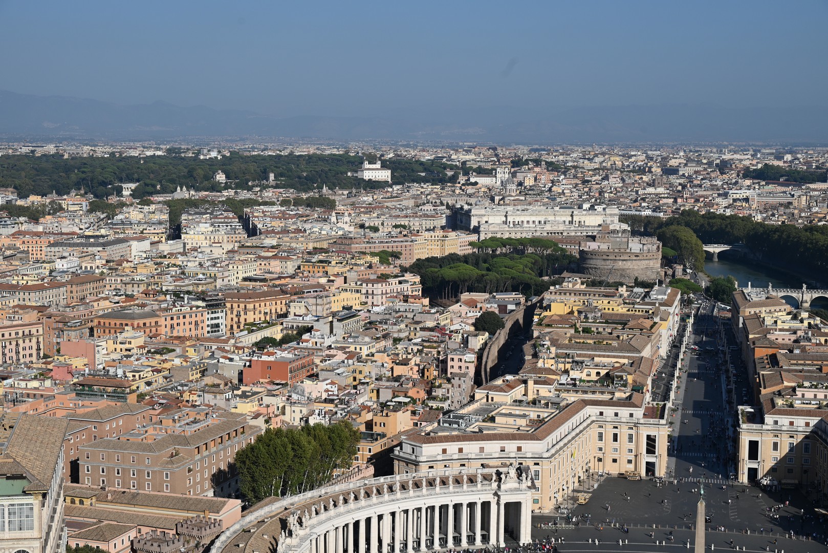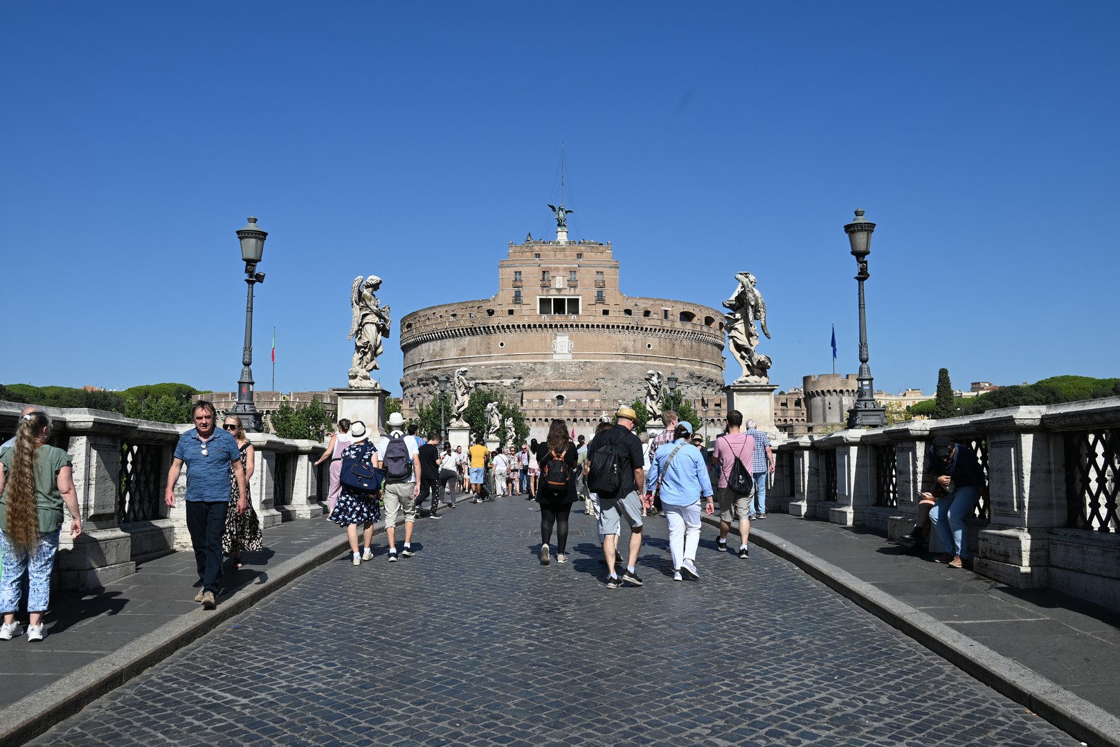 Für den nächsten Tag hatten wir bereits Tickets für den Petersdom von zuhause aus gekauft. Da noch etwas Zeit war, bis wir uns dort einfinden mussten, gingen wir zum Pantheon. Leider war die Schlange so lang, dass wir befürchteten, zu spät am Petersdom zu sein und so vertagten wir unseren Besuch. Auf dem Weg zum Petersdom konnten wir einen guten Blick auf die Engelsburg auf der anderen Seite des Tibers werfen.