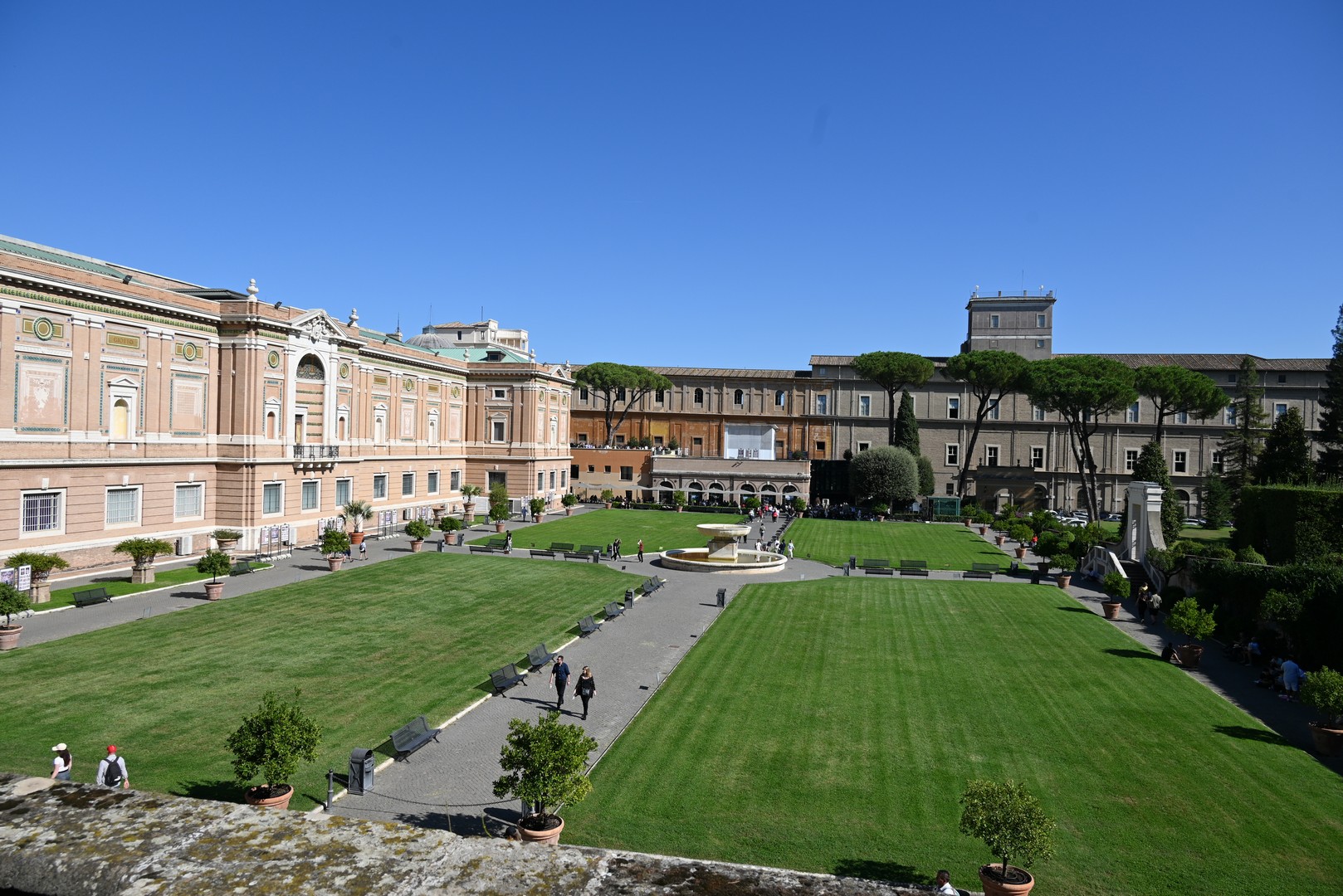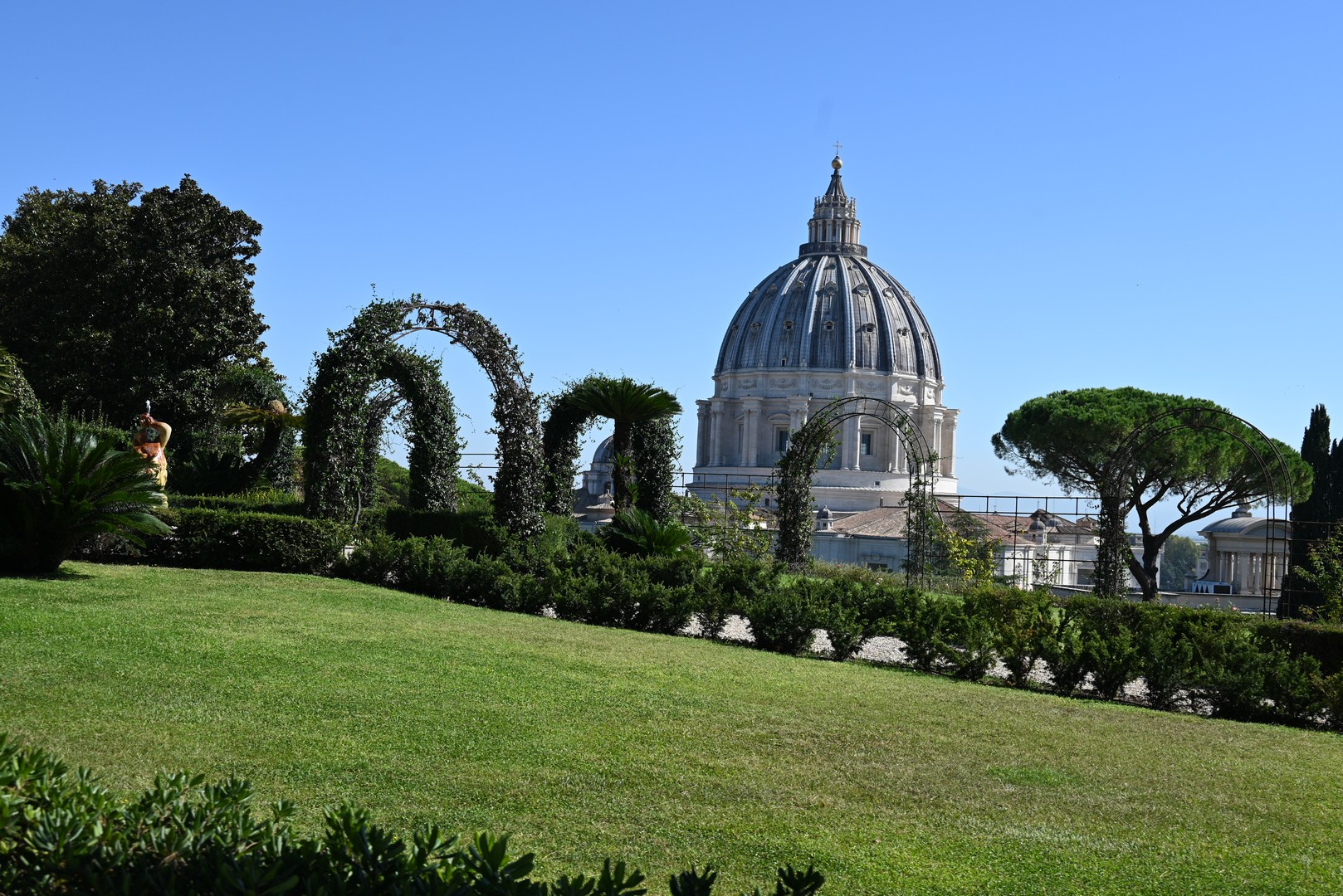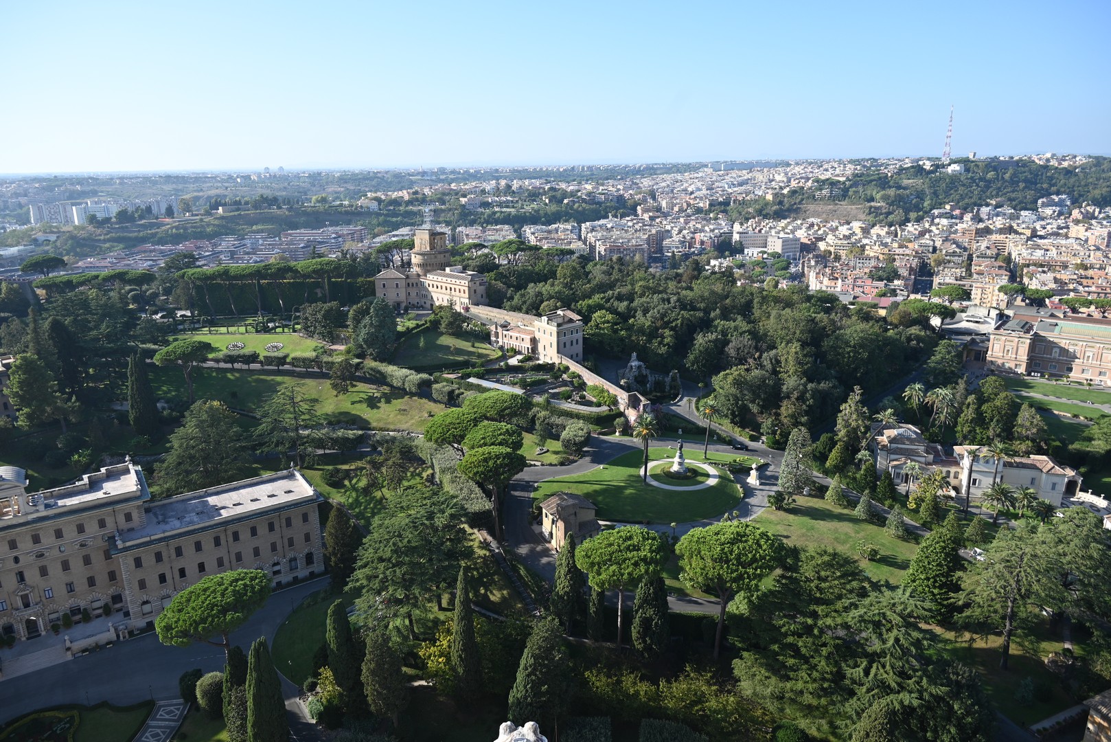 Für die Fahrt durch die vatikanischen Gärten mussten wir zu den vatikanischen Museen und waren sehr dankbar, dass wir diesmal tatsächlich Tickets hatten, mit denen wir an der ewig langen Schlange vorbei gehen konnten. Drinnen angekommen, mussten wir noch einen Moment warten, bis uns unser Guide mitnahm und zu einem Bus brachte. Schon am Tag vorher hatten wir uns über uns selbst geärgert, da wir für die Führung im Petersdom nicht an eigene Kopfhörer für den Audioguide gedacht hatten und deshalb die billigen Einmal-Kopfhörer nutzen mussten, die die Führerin austeilte. Diesmal waren wir besser vorbereitet und hatten Kopfhörer dabei. Die Gärten haben uns sehr gut gefallen. Man kann sich gut vorstellen, dort als Papst die verschieden angelegten Bereiche zu genießen und seinen Gedanken nachzugehen.