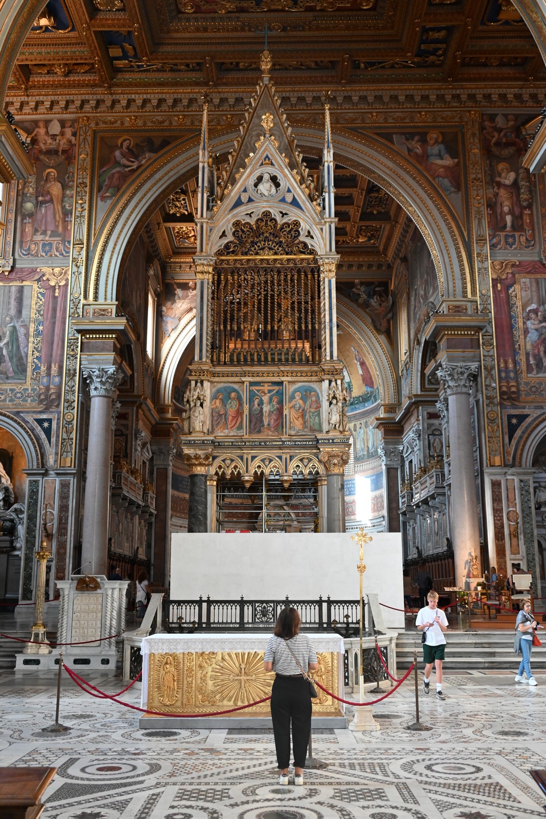Der nächste Tag war auch wieder vollgepackt mit Kirchen, die allerdings etwas außerhalb lagen, so dass wir Metro fuhren. Die Tickets kauften wir direkt am Schalter am Bahnhof, was unkompliziert war. Unser erstes Ziel war San Giovanni in Laterano, eine der sieben Pilgerkirchen und der fünf Papstbasiliken Roms. Sie hat uns sehr beeindruckt.