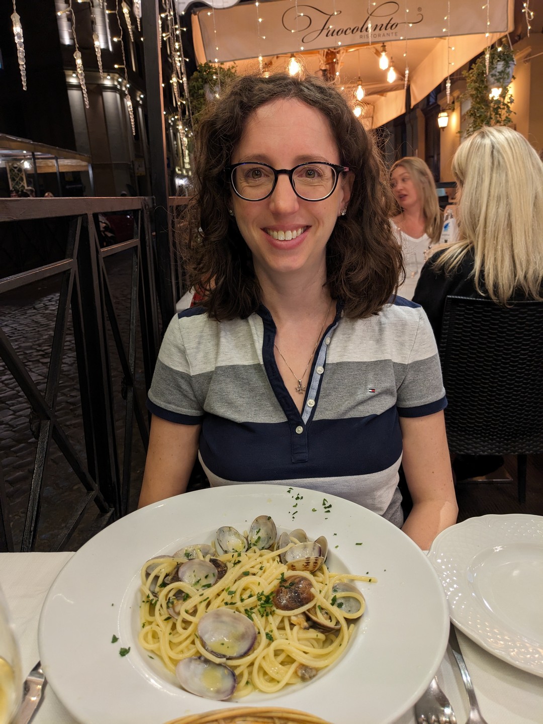Am nächsten Morgen kamen wir, mit zwei Stunden Verspätung, in Rom an und liefen zu unserem Hotel Leon‘s Place, das ca. 15 Minuten Fußweg vom Bahnhof entfernt lag. Wir konnten bereits einchecken, mussten aber noch eine Stunde warten, bis unser Zimmer fertig war. Die Zeit nutzen wir und gingen in der Nähe im Ristorante Di Vincenzo Mittagessen.
