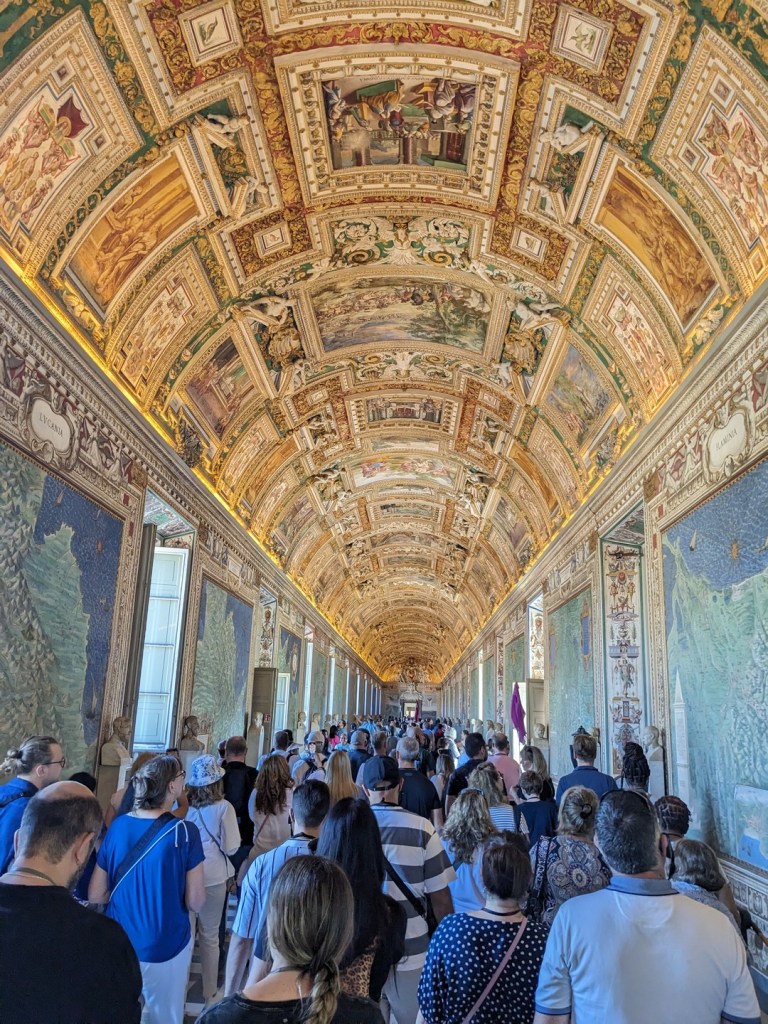 Wieder in den vatikanischen Museen angekommen wollten wir jetzt in die sixtinische Kapelle. Es gibt keine Möglichkeit direkt dorthin zu kommen, d.h. man läuft durch das komplette Museum. Da aber alle wohl nur zur sixtinischen Kapelle wollten, war es eine große Menschenmasse, die sich durch die Gänge schob. Selbst wenn man sich etwas hätte anschauen wollen, hätte man keine wirkliche Chance gehabt.