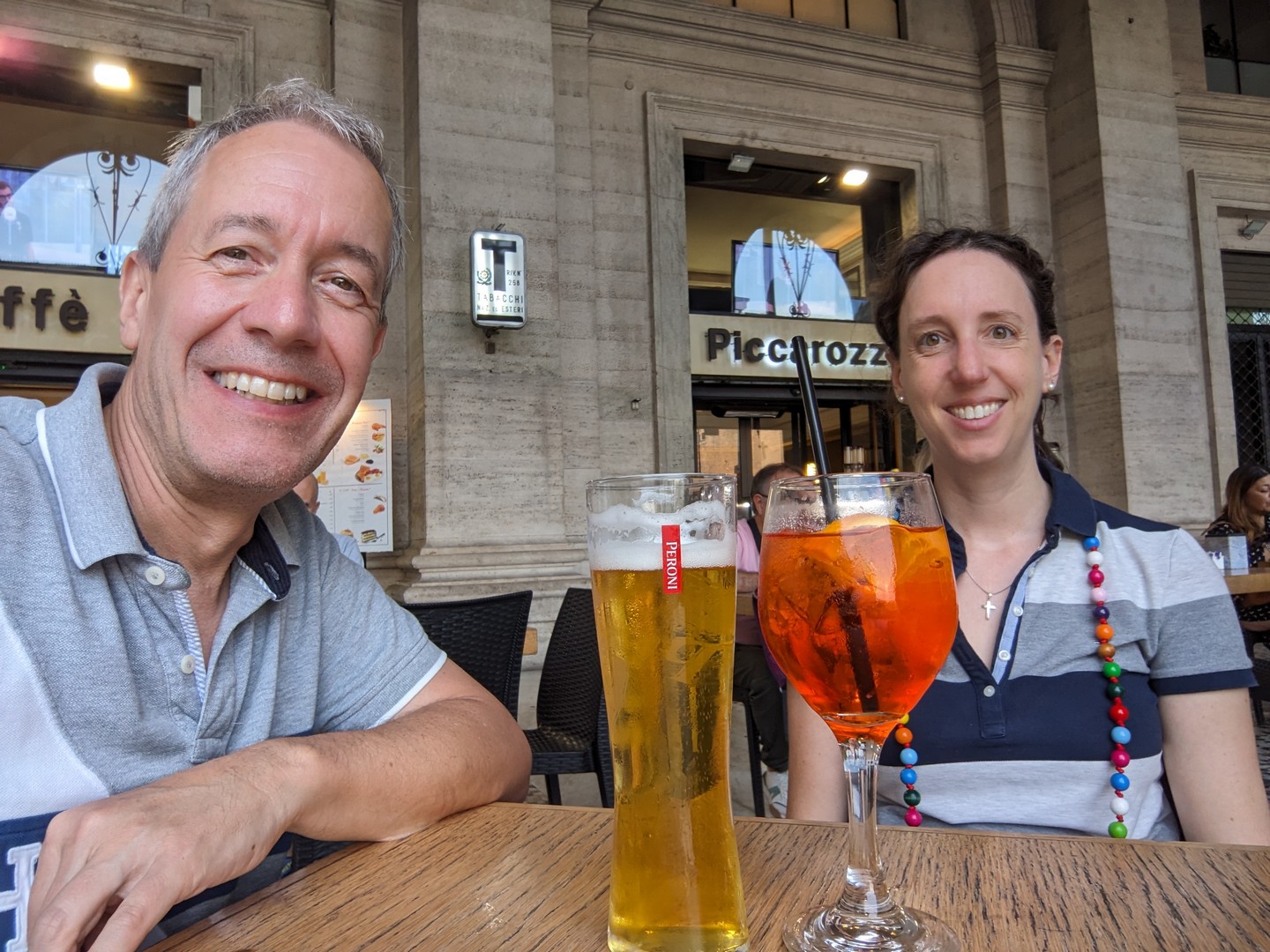 Am Rande des Piazza Del Popolo genossen wir ein Bier bzw. Aperol Spritz.