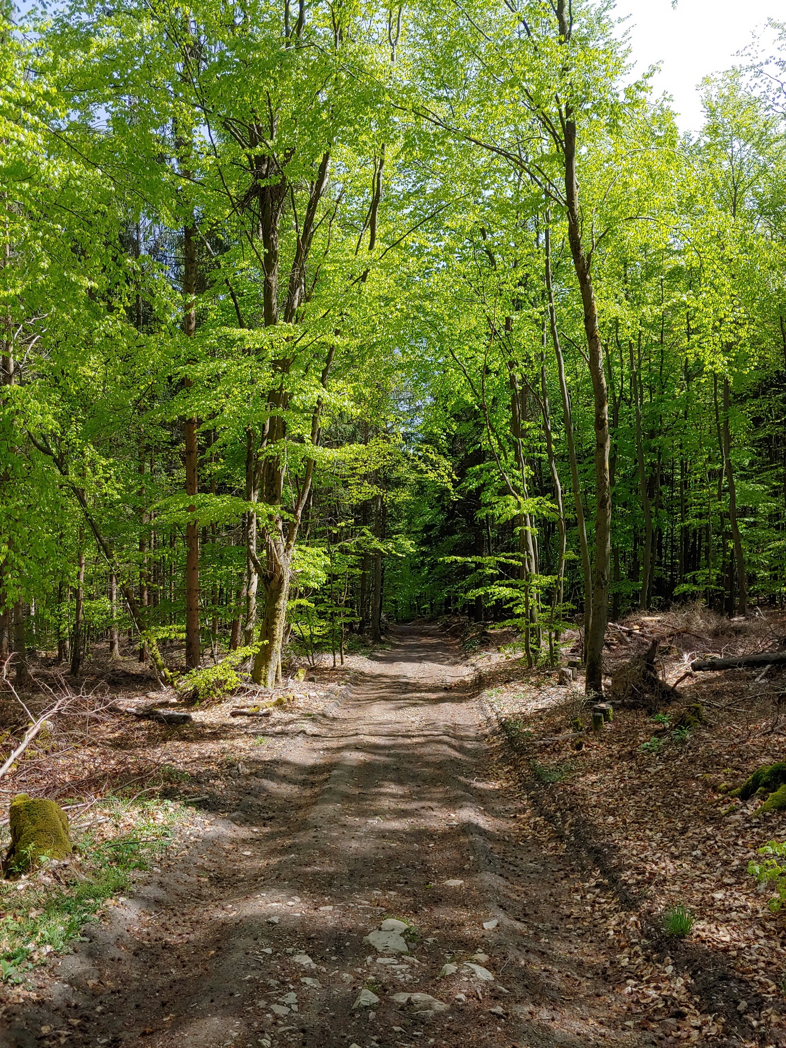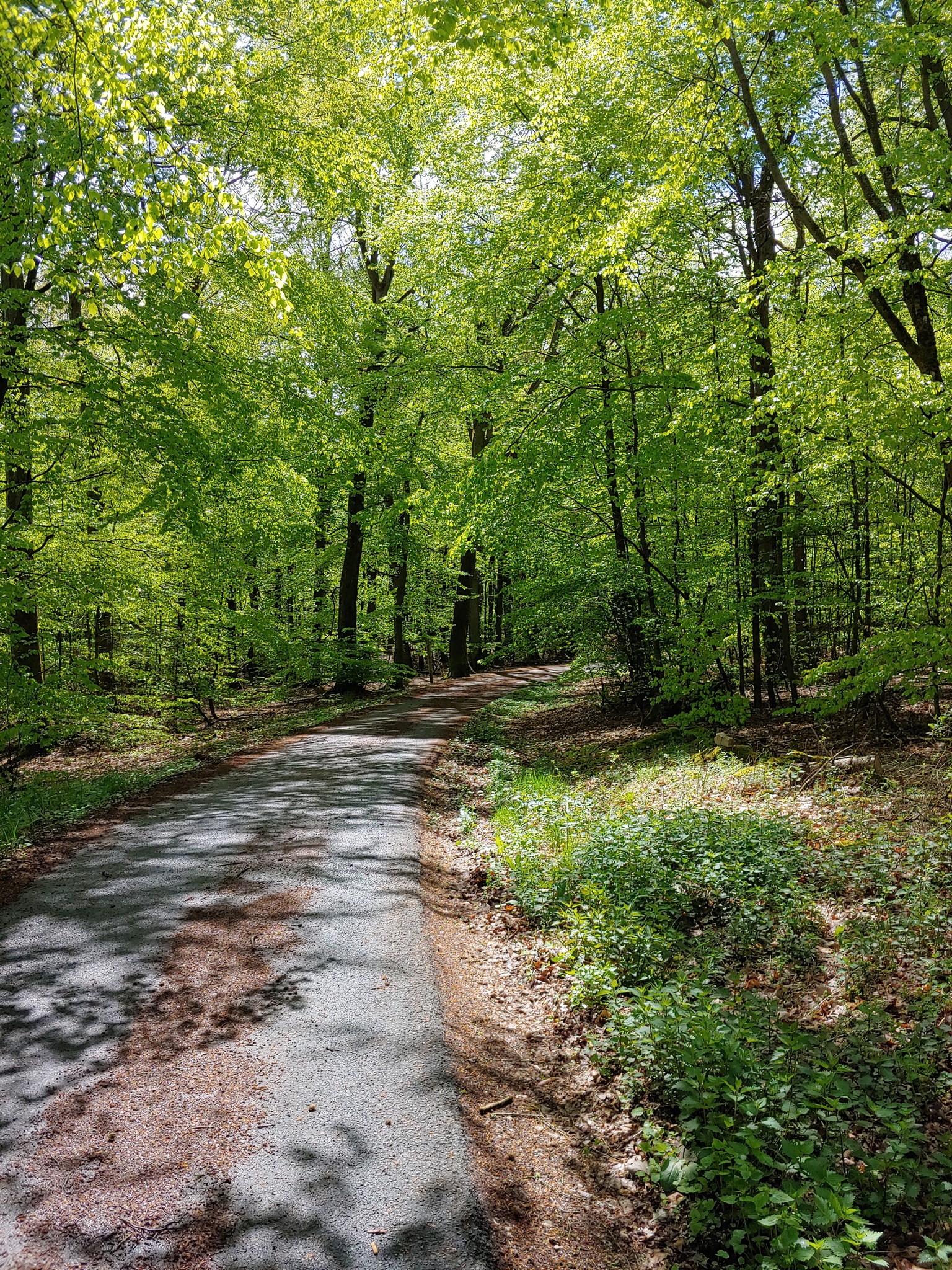 Die meiste Zeit führt die Strecke durch den Wald, auf breiten Wegen, so dass wir schön nebeneinander herlaufen und uns unterhalten können.