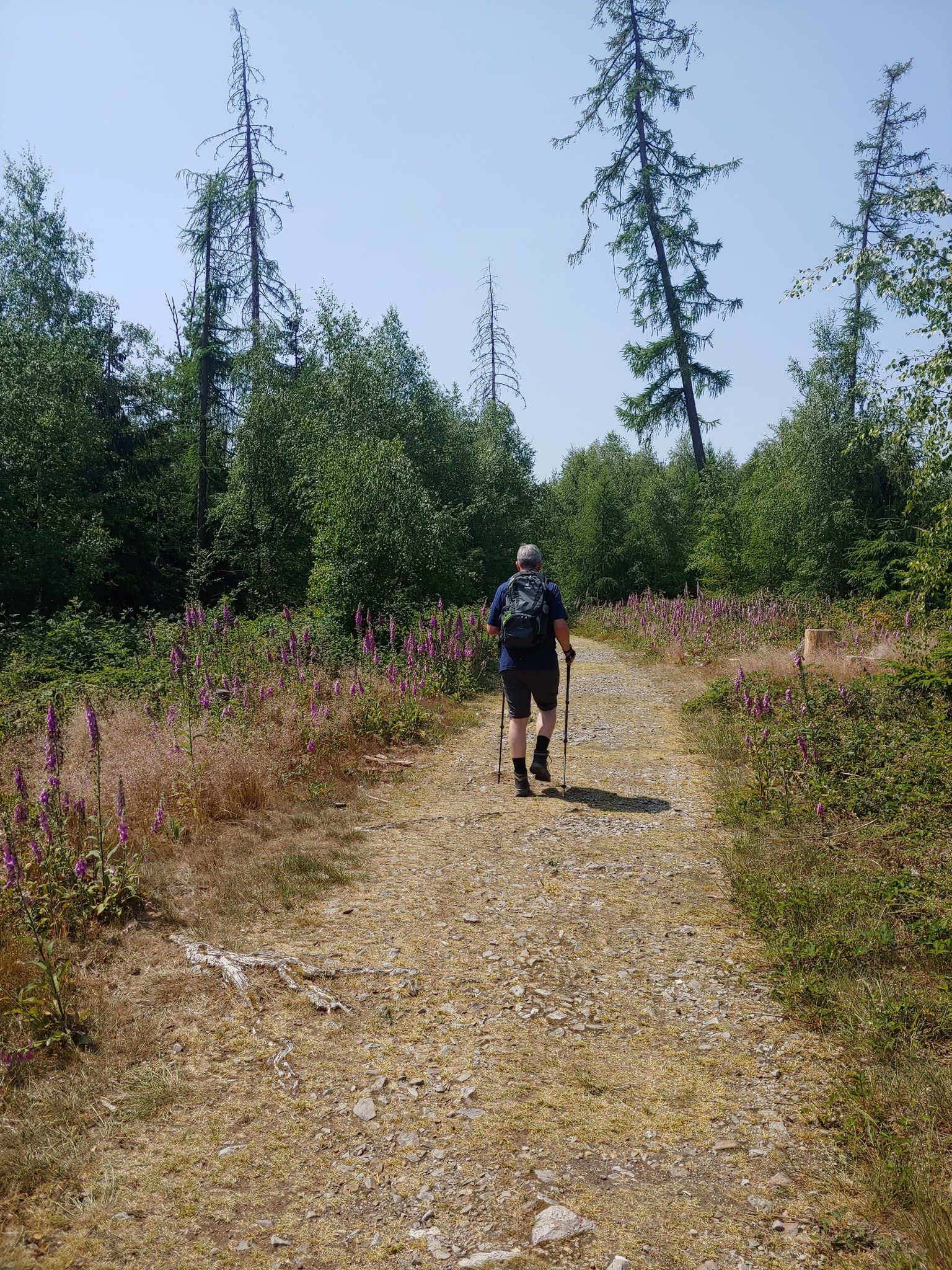 Auch unsere Wanderstöcke kommen zum Einsatz, nämlich für ein etwas steileres Stück bergauf und dann ein Stück bergab, wo wir die Stöcke gern für zusätzlichen Halt verwenden.