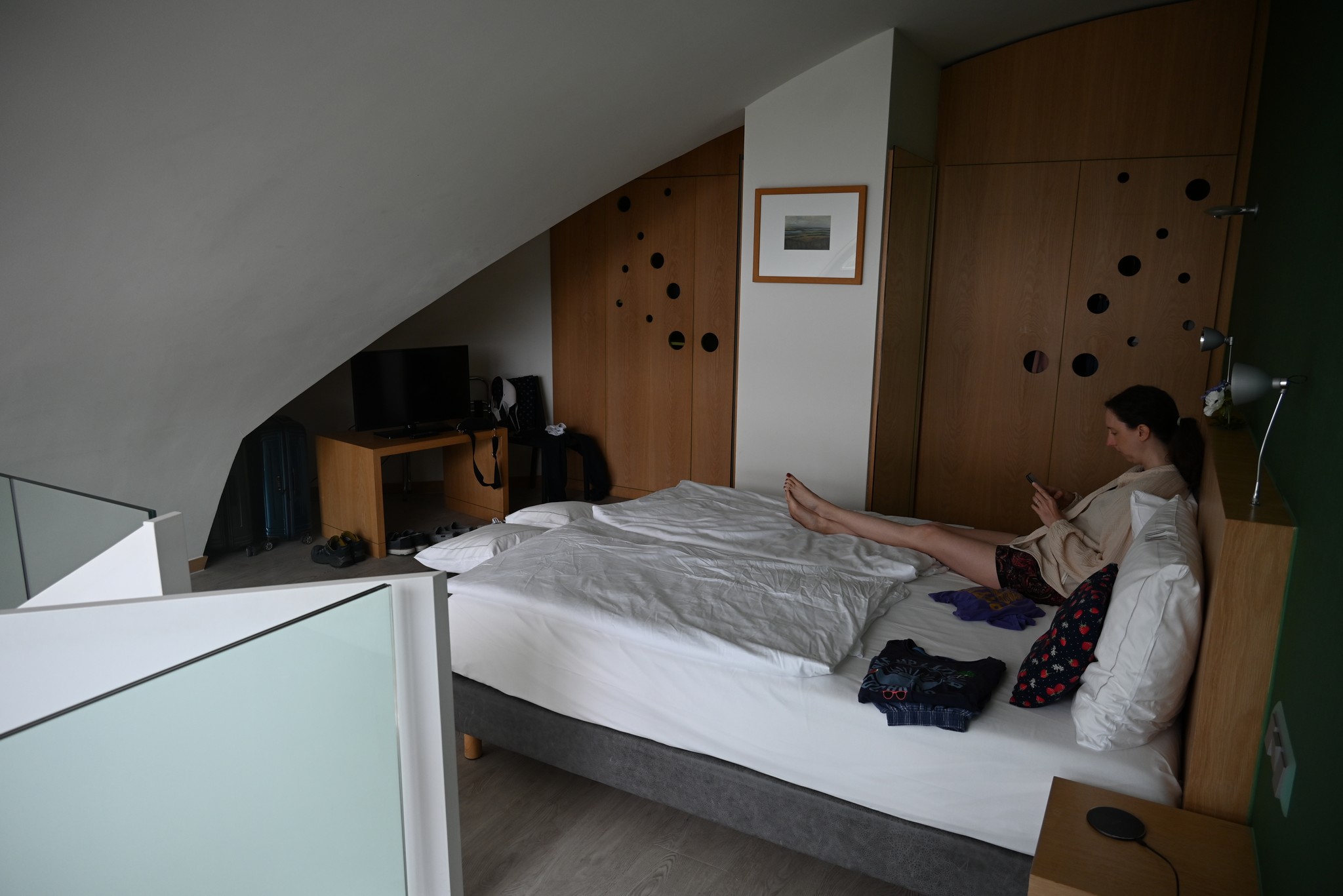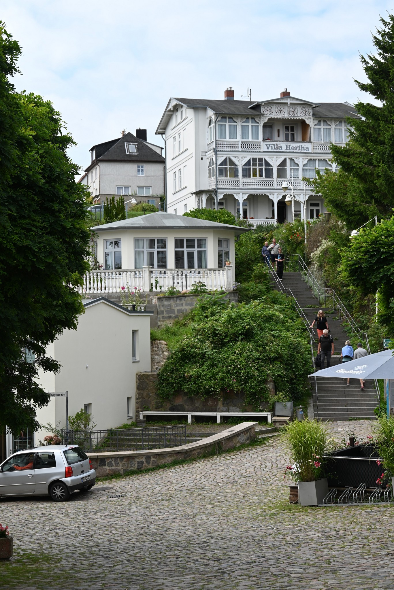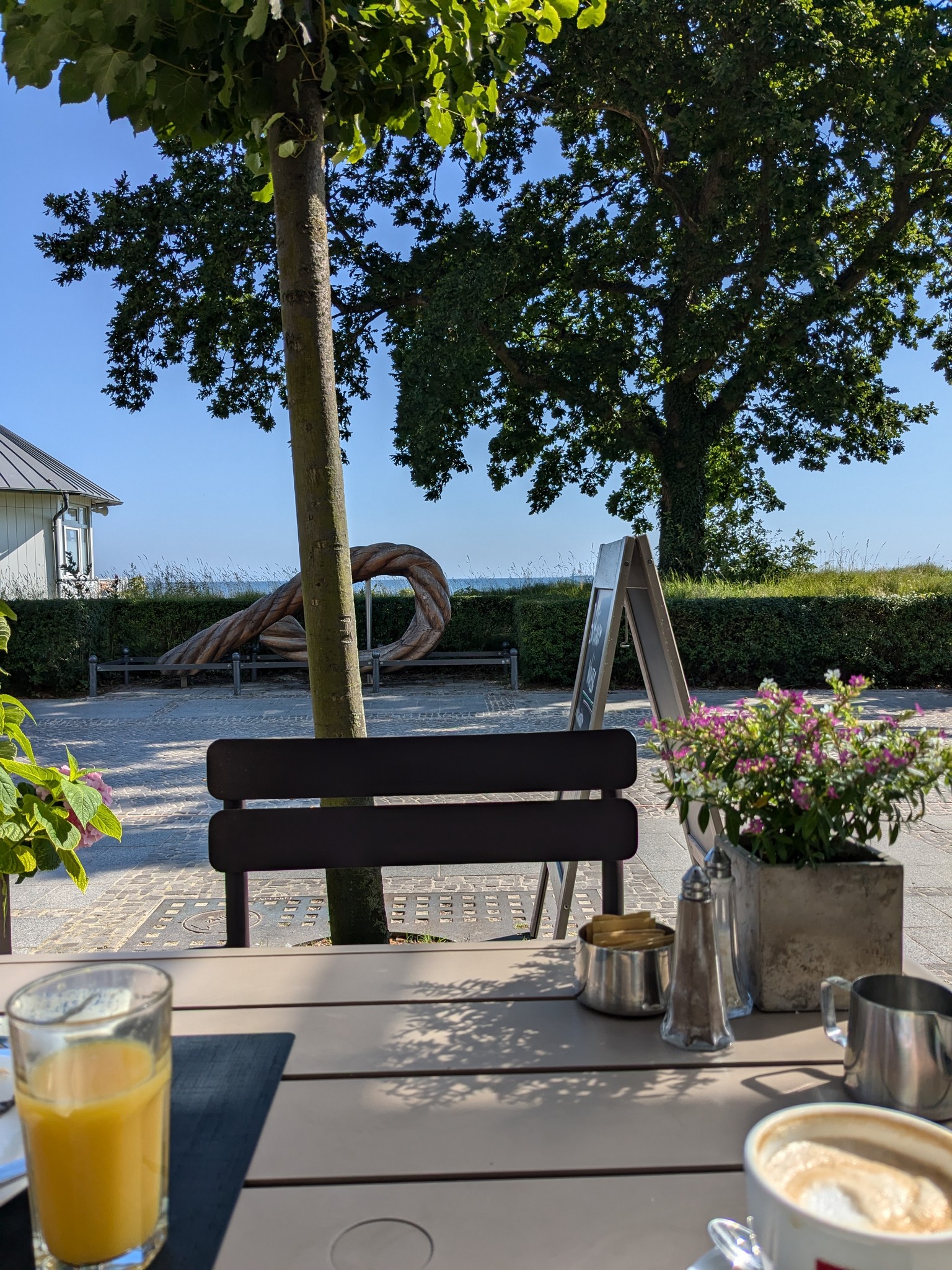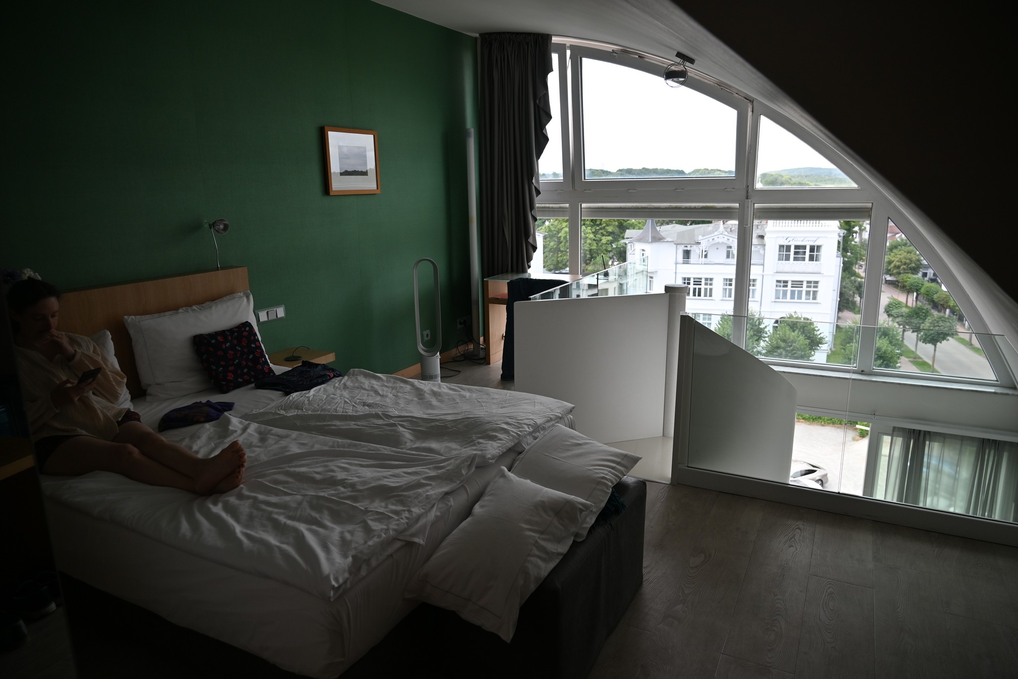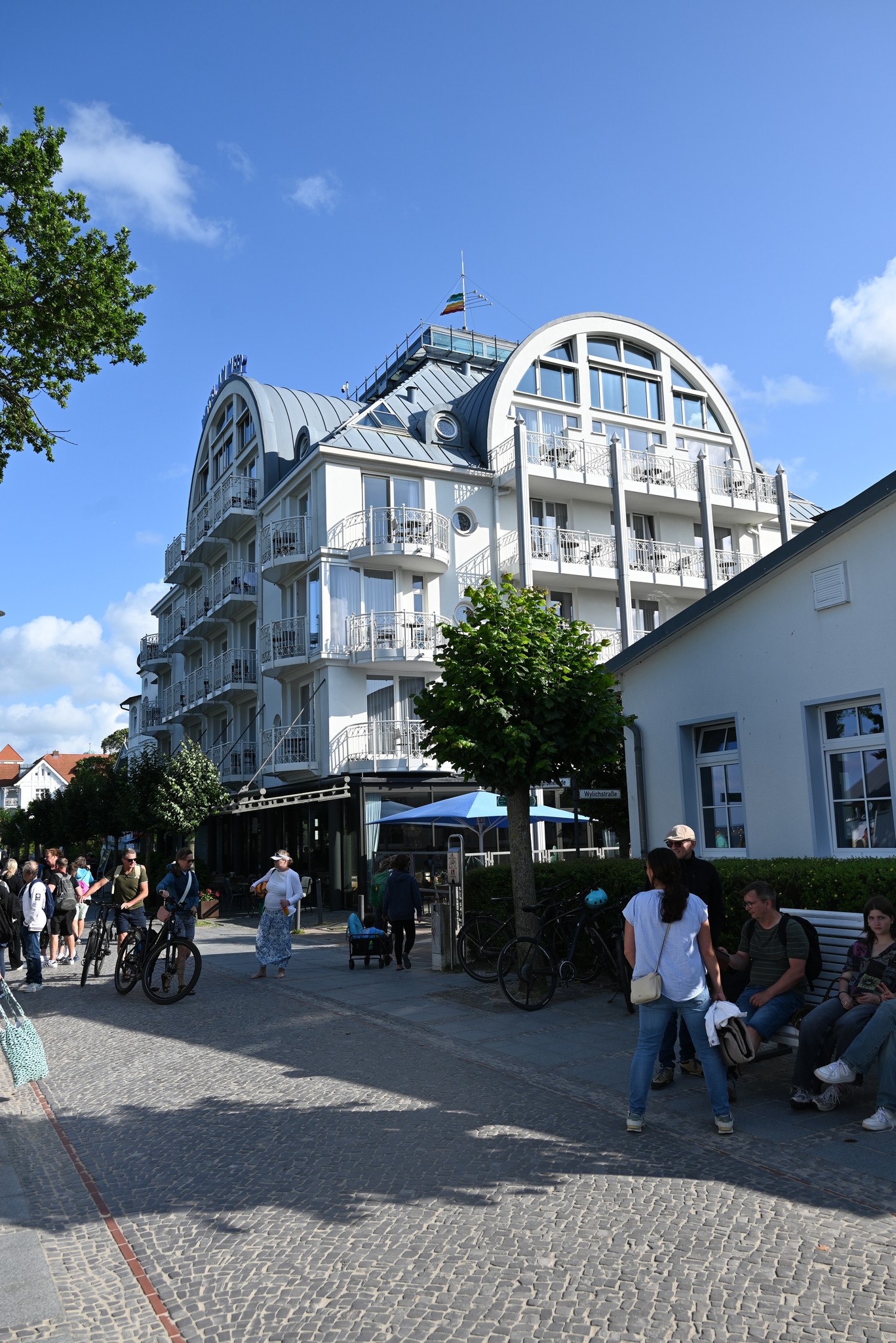 Das Hotel hat uns sehr gut gefallen. Es ist modern eingerichtet, liegt direkt an der Strandpromenade, nicht weit von der Seebrücke und damit dem Stadtzentrum von Binz entfernt und das Frühstück lässt keine Wünsche offen. Mehrmals konnten wir draußen frühstücken. Wir hatten ein Galeriezimmer gebucht, weil das irgendwie schön klang. Allerdings stellten wir dann fest, dass es doch recht unpraktisch war. Das Bett war oben, das Bad unten, so dass man nachts immer die enge Wendeltreppe runter musste, wenn man auf Toilette gehen wollte. Im Laufe der Woche verteilten sich einige Sachen auf oben und unten, so dass man manches immer wieder suchen musste. Wir werden beim nächsten Urlaub in Binz wieder dieses Hotel buchen, aber dann ein normales Zimmer.