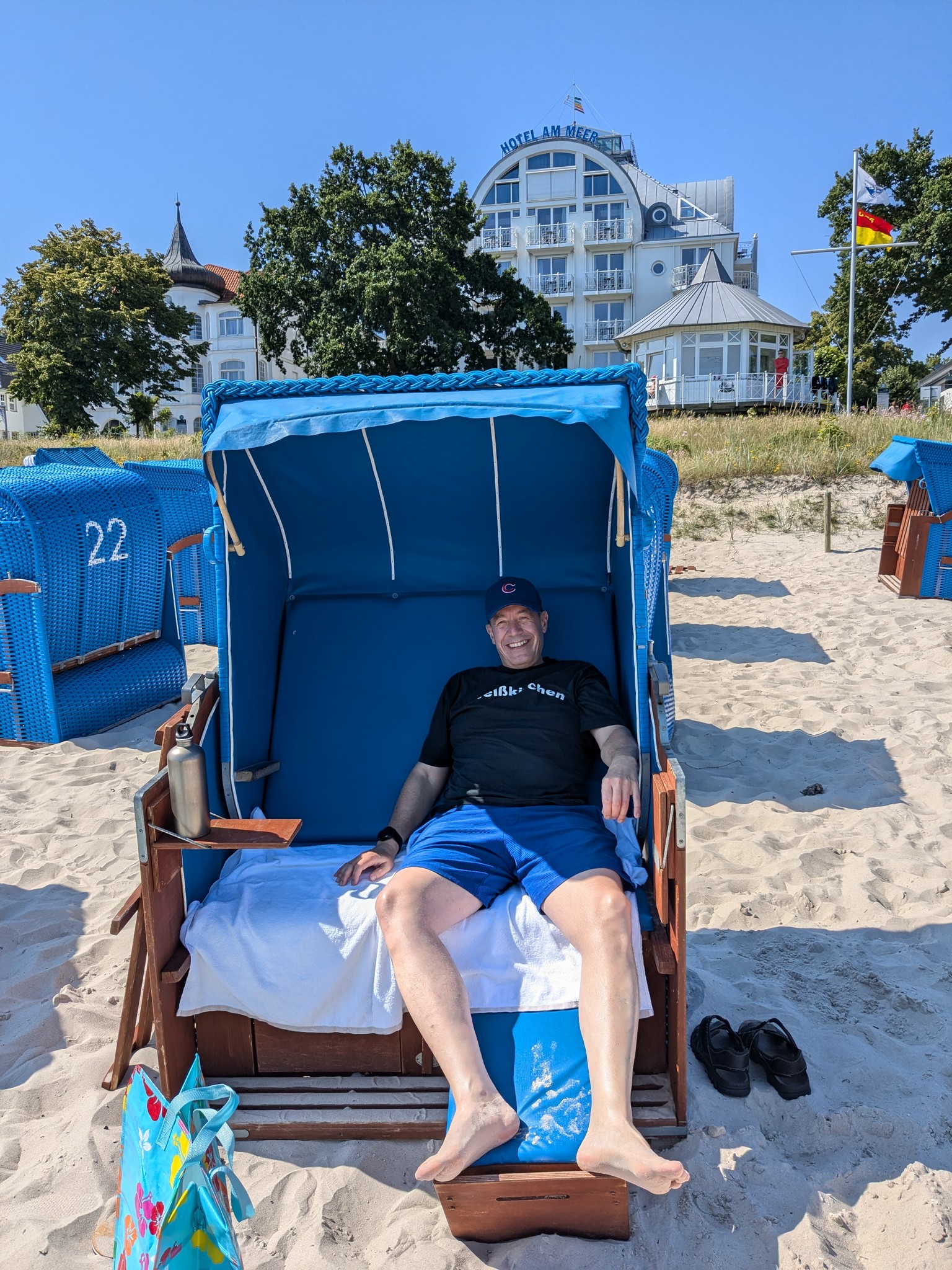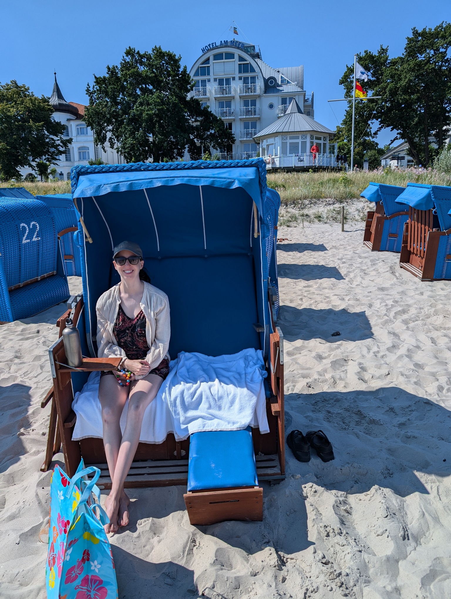 Wir hatten für die Woche einen Strandkorb mitgebucht, haben diesen allerdings nur 2,5 Tage genutzt. Mehr gab das Wetter nicht her. Wir haben die Zeit im Strandkorb sehr genossen und waren vor allem am Sonntag sehr dankbar für diesen festen Platz, denn es war sehr voll am Strand.