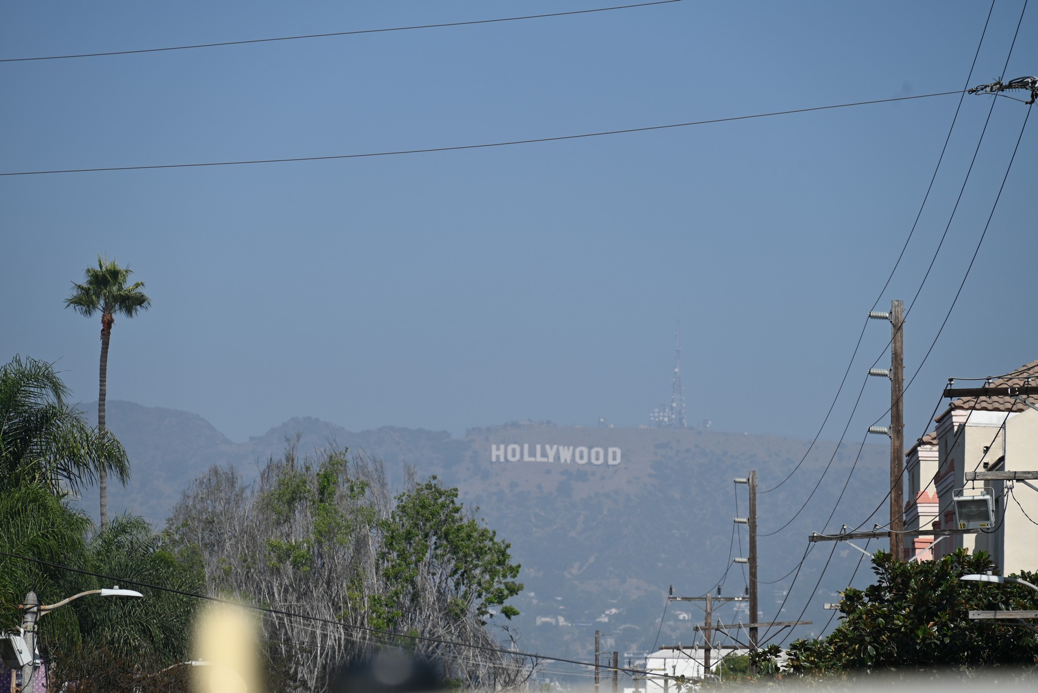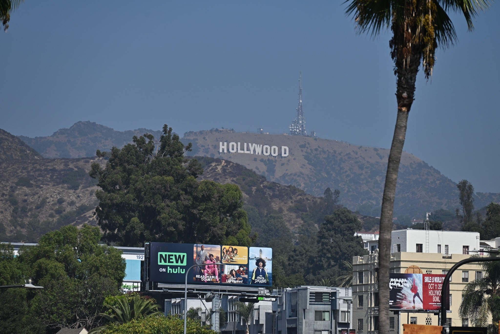 Nach der Tour machten wir noch eine kurze Mittagspause im Ovation Center und hatten hier einen ganz guten Blick auf das Hollywood Sign. Auch vom Big Bus aus konnten wir es schon sehen. Im Ovation Center stand außerdem eine kleine Kopie, so dass man hier ein Selfie machen konnte.
