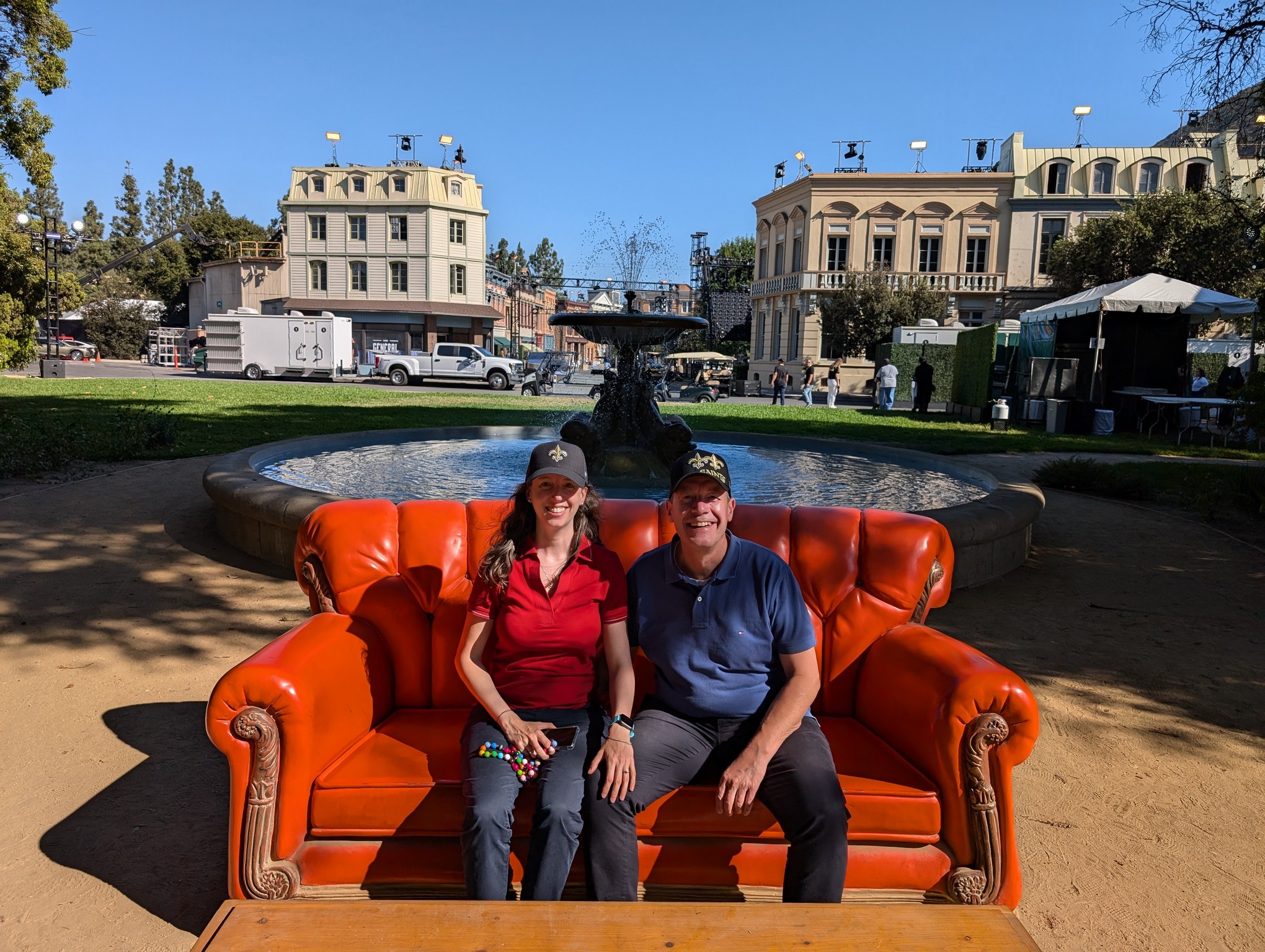 Wir machten Stopp am Brunnen aus dem Vorspann von Friends. Hier konnten wir uns auf die Couch setzen und ein Foto machen lassen. Im Hintergrund war Luke’s Diner aus Gilmore Girls, wobei die Kulisse nicht mehr als solche gestaltet war.