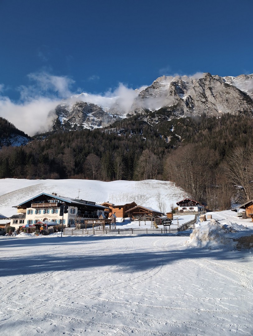 Insgesamt haben wir bereits fünfmal Urlaub in Berchtesgaden gemacht, die Berichte findet ihr hier und hier. Dieses Jahr waren wir zum ersten Mal im Winter dort. Ursprünglich wollten wir im Januar Ski fahren gehen. Nachdem wir aber im Herbst 2024 beschlossen haben, das Skifahren aufzugeben, kamen wir auf die Idee, Winterwanderungen zu machen. Und so fuhren wir im Januar eine Woche nach Berchtesgaden und hofften auf Schnee. Wir wurden nicht enttäuscht. Wie immer wohnten wir im Hotel Edelweiß. Ungewohnt war, dass es am Anfang der Woche sehr leer war, bis zum Ende füllte sich das Hotel aber. Wie schon die letzten Male genossen wir auch dieses Mal wieder den tollen Service, das hervorragende Essen und die familiäre Atmosphäre.