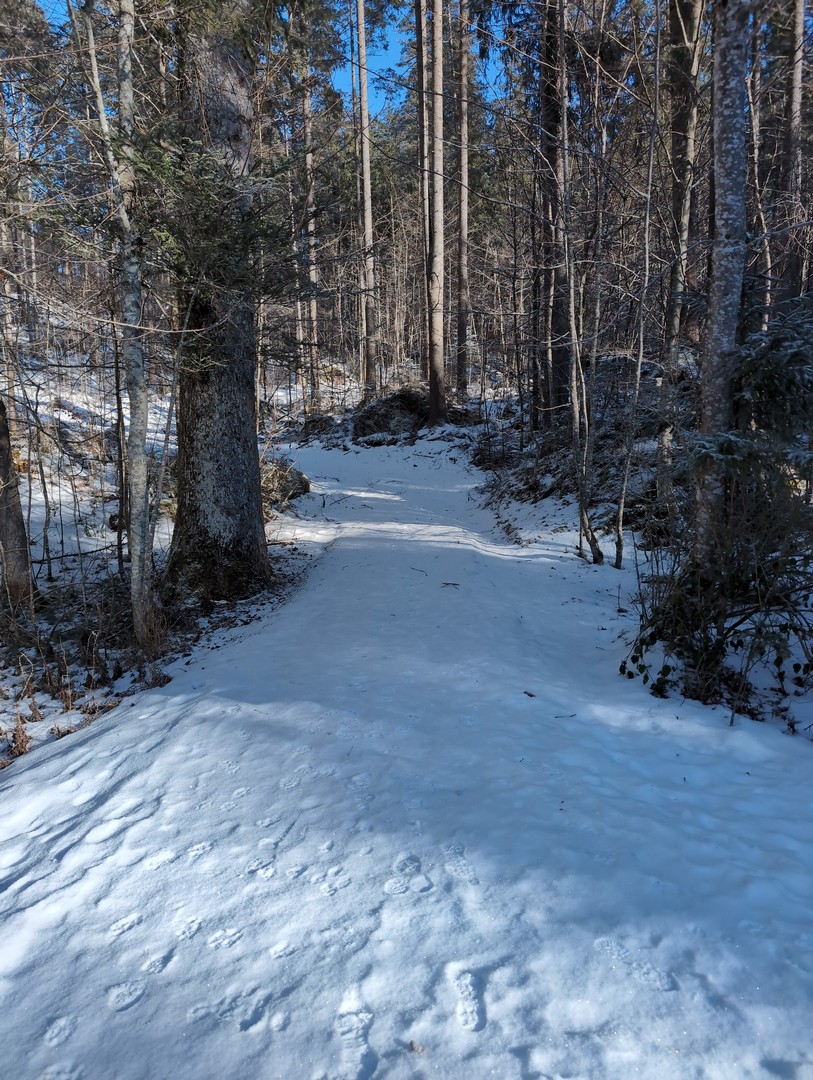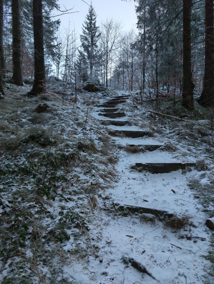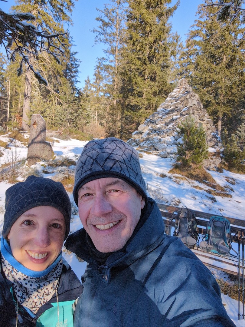 Die Wanderung führt weiter um den See herum, wieder in den Wald zur Magdalenenhöhe. Auch hier kamen wieder unsere Spikes zum Einsatz.