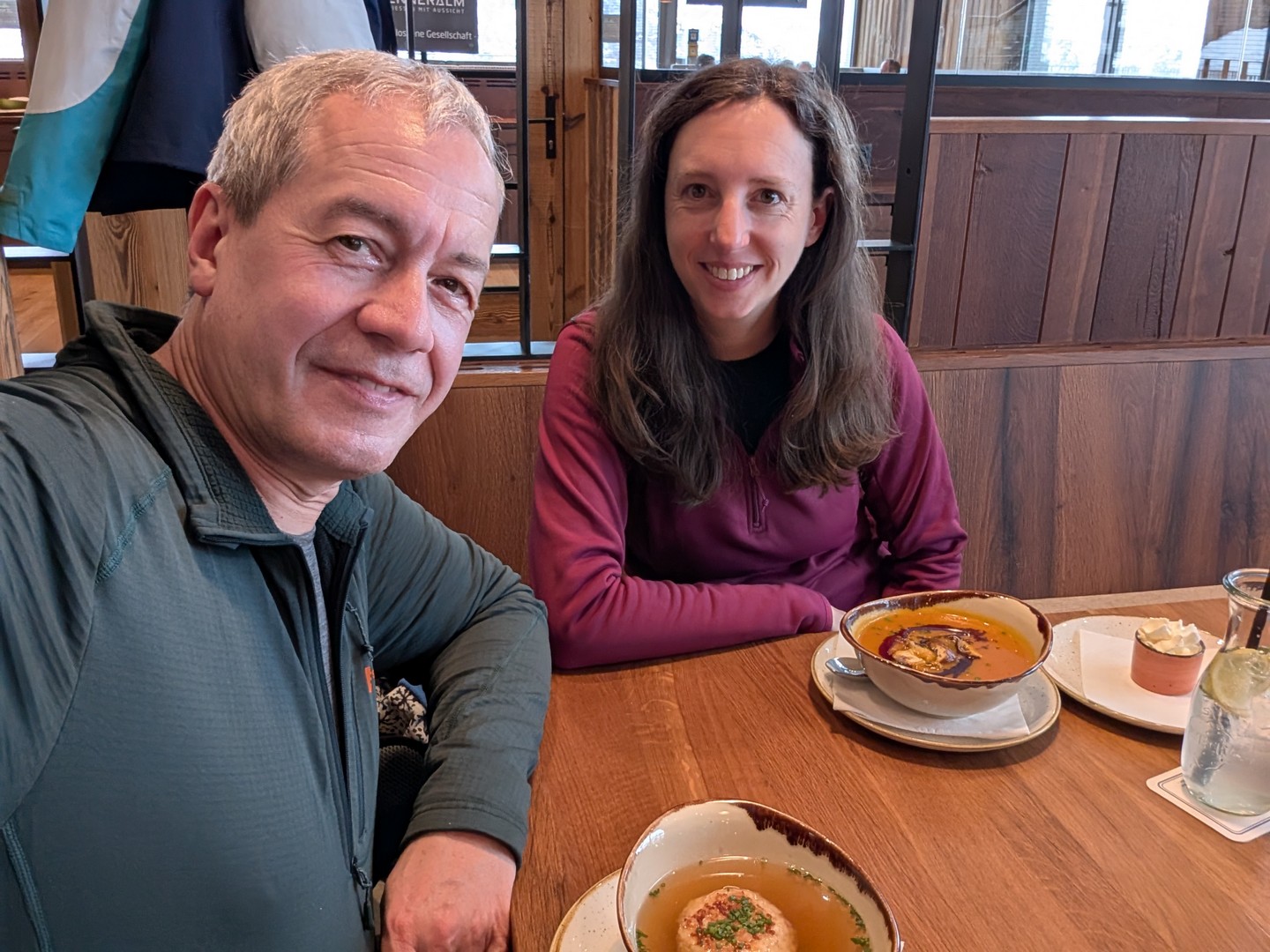 Die Wanderung war deutlich kürzer als gedacht, aber durch die sehr steilen Anstiege und Abstiege doch sehr anstrengend. Am Ende kehrten wir im Restaurant der Bergstation der Jennerbahn ein. Die Restaurants in der Bergstation und der Mittelstation gehören zusammen und haben uns beide gut gefallen.