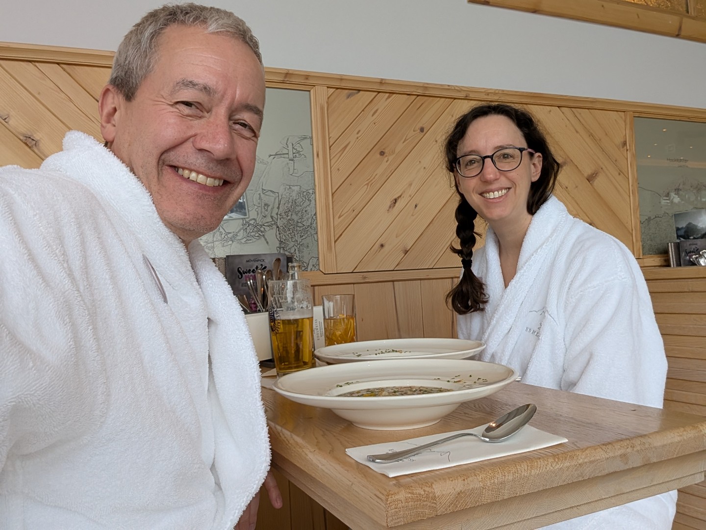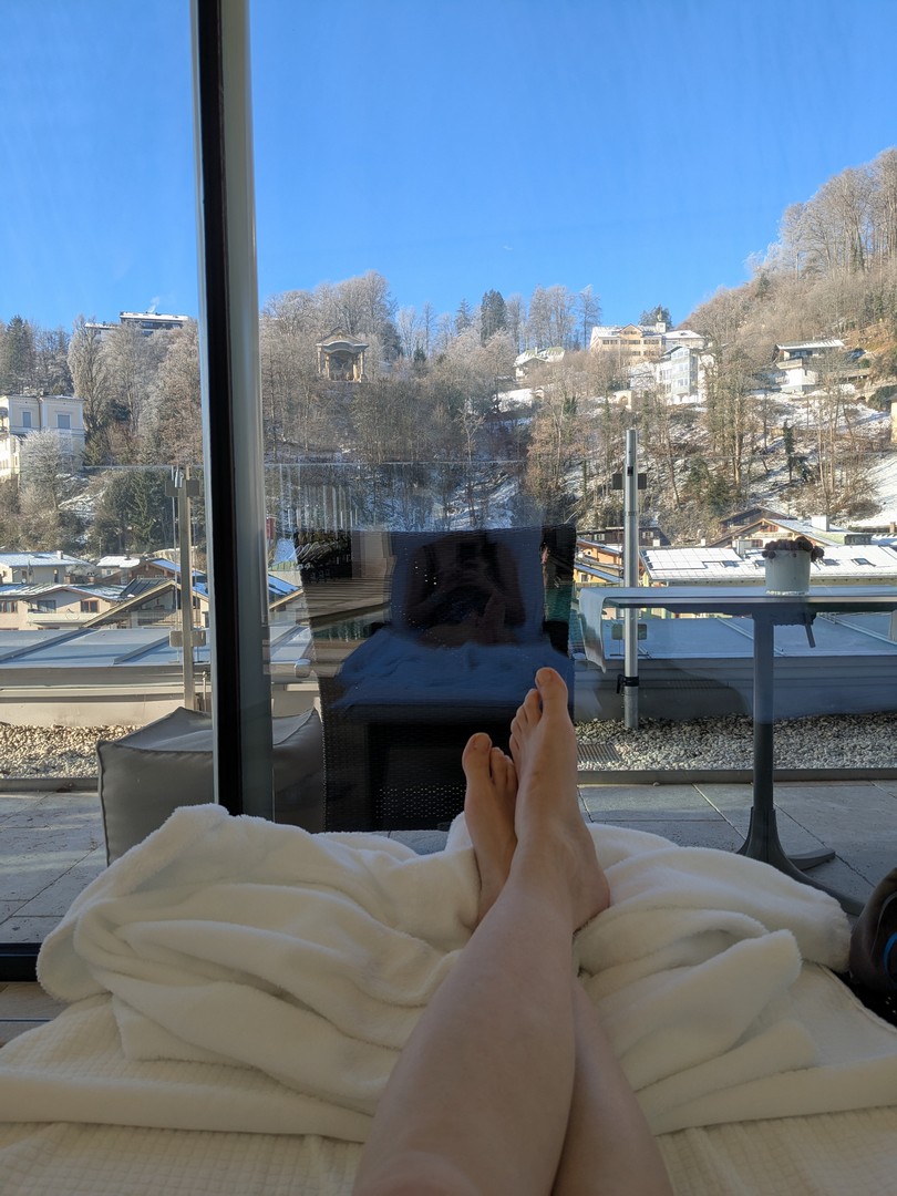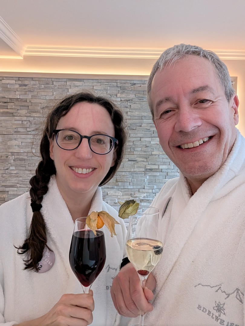 Am Mittwoch und am Samstag entspannten wir uns im Wellnessbereich des Hotels. Am Mittwoch konnten wir etwas Schneefall beobachten und lösten außerdem einen Massagegutschein ein. Vorher machten wir eine kleine Mittagspause im Poolrestaurant. Am Samstag gingen wir zum Mittagessen in den Gasthof Neuhaus.