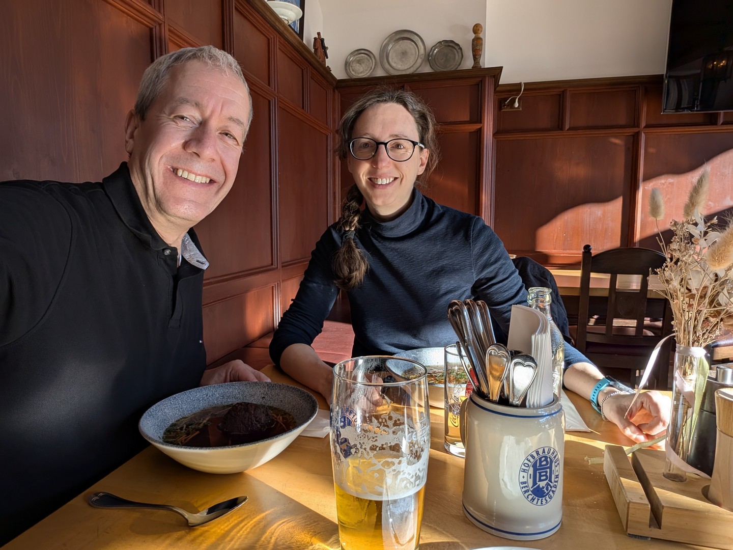 Leider hatte ausgerechnet in unserer Urlaubswoche der Oberwirt, bei dem wir die Jahre zuvor eingekehrt waren, Betriebsferien. Alle anderen Restaurant öffneten erst ab 17 Uhr. So fuhren wir mit dem Bus zurück und kehrten beim Neuhaus ein.